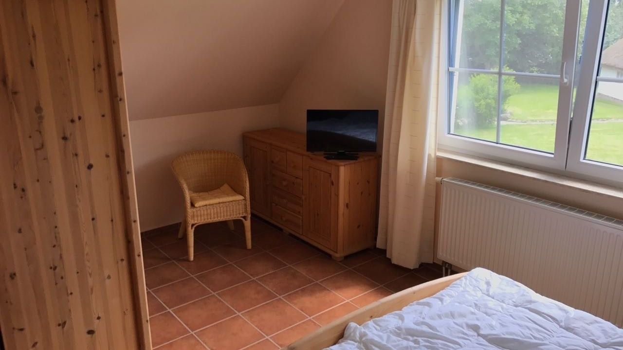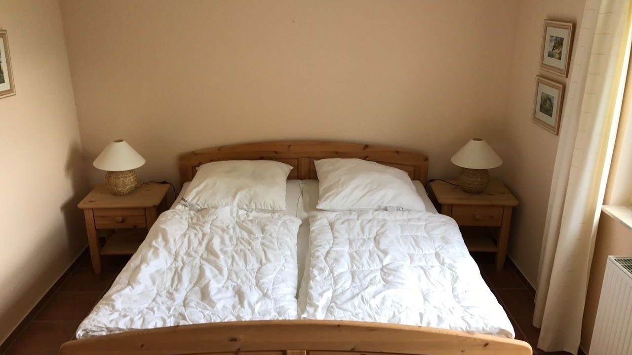 Unsere Doppelhaushälfte ist mit ca. 110 qm sehr großzügig geschnitten, modern eingerichtet und bietet im Obergeschoss mit 2 Schlafzimmern (je 1 Doppelbett) und 1 Schlafzimmer ( 1 Etagenbett) Platz für 6 Personen. Zusätzlich bieten wir 1 Kinderbett an. Die hauseigene Sauna (gegen Gebühr) und die idyllische, ruhige Lage lädt zum Relaxen und Entspannen ein.