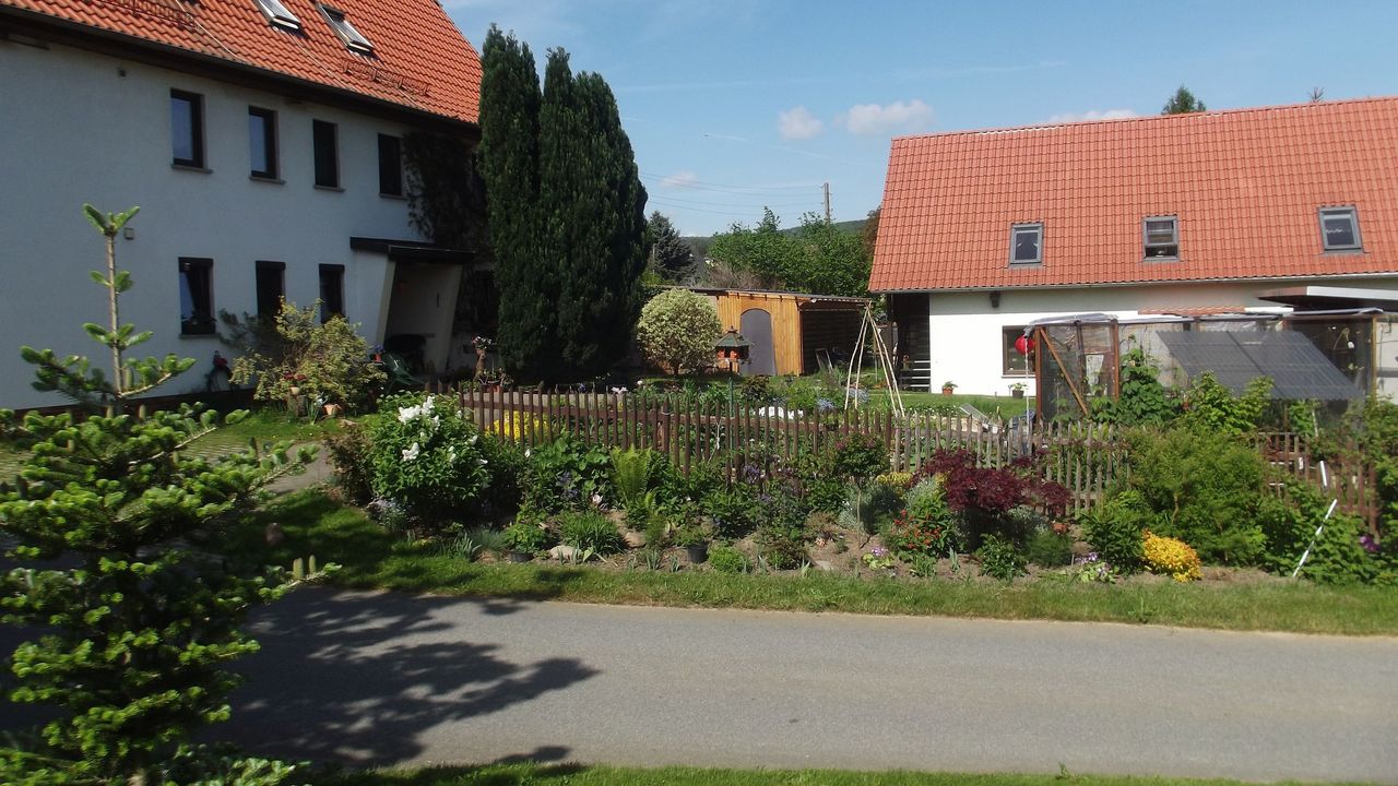 Am Wohnhaus befindet sich ein Blumen- und Gemüsegarten. Daran schließt sich eine große Spielwiese (mit Tischtennisplatte) mit Obstbäumen (500qm) an. Eine Sitzecke für unsere Gäste mit Gartenmöbeln, Grillplatz und Spielgeräten (Gartenschach, Tischtennis, Trampolin ) ist im Garten vorhanden. An der Westseite des, Hauses befindet sich eine Terrasse, wo man die Abendsonne genießen kann. Fahrräder stehen zum ausleihen bereit. Parkplätze sind am Haus ausreichend vorhanden.