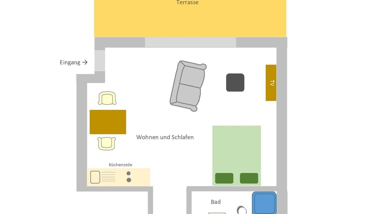 Sie haben einen direkten Zugang zur ca 20 qm großen Terrasse mit Gartenmöblen in Südausrichtung.