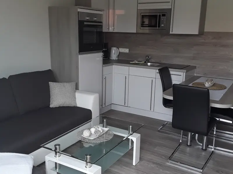 Unser Apartment hat ein schönes Bad mit Dusche, eine komplett ausgestattete Küche. Im Wohnzimmer steht eine Schlafcouch für 2 Personen. Dieses Apartment verfügt über eine eigene Terrasse. Terrassenmöbel und Sonnenschirme stehen incl. zur Verfügung. In den Schlafzimmern finden Sie ein kuschliges Doppel- und Einzelbett. Für die Strandausflüge haben wir auch einen Bollerwagen für Sie. Und für die etwas kühleren Tage verfügt unser Apartment über eine individuell regelbare Heizung. Für die kleinen Gäste stehen ein Kinderhochstuhl und Spielsachen bereit. Für Ihr Auto steht ein Stellplatz auf dem Grundstück zur Verfügung.