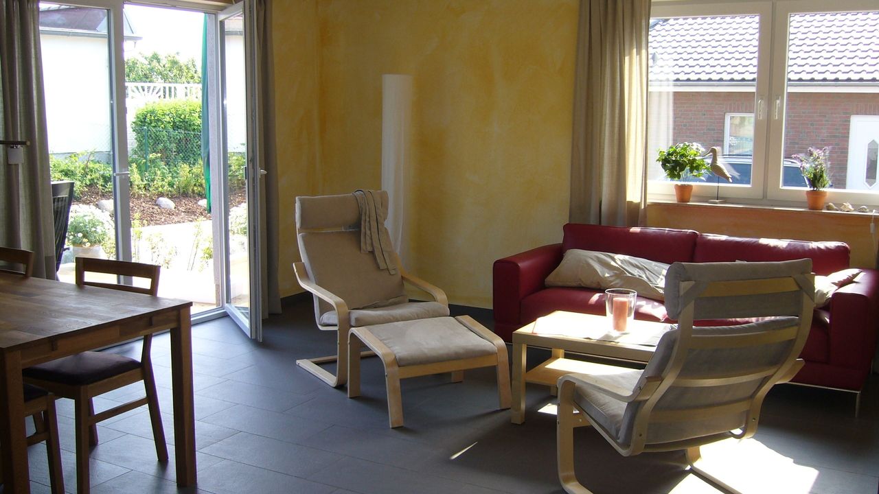 Sie hat einen direkten Zugang zur ca. 20 m² großen Terrasse in Südausrichtung und zum Garten, der mit Strandkorb und Gartenmöbel für 4 Personen ausgestattet ist.