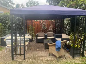 Das Grundstück verfügt über 2 abgeschlossene Parkplätze und eine Terrasse mit Pavillonüberdachung.