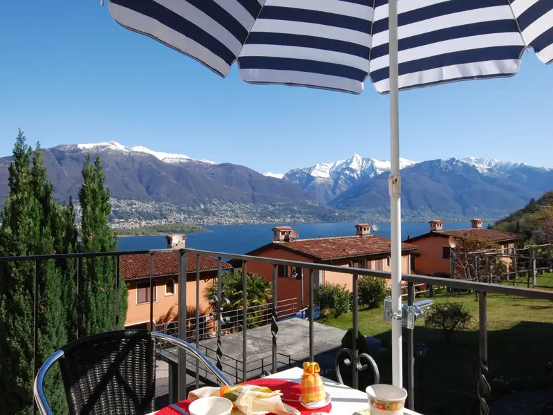 Balkon: Mit Sitz- und Essgelegenheit und herrlicher Sicht auf den Lago Maggiore.