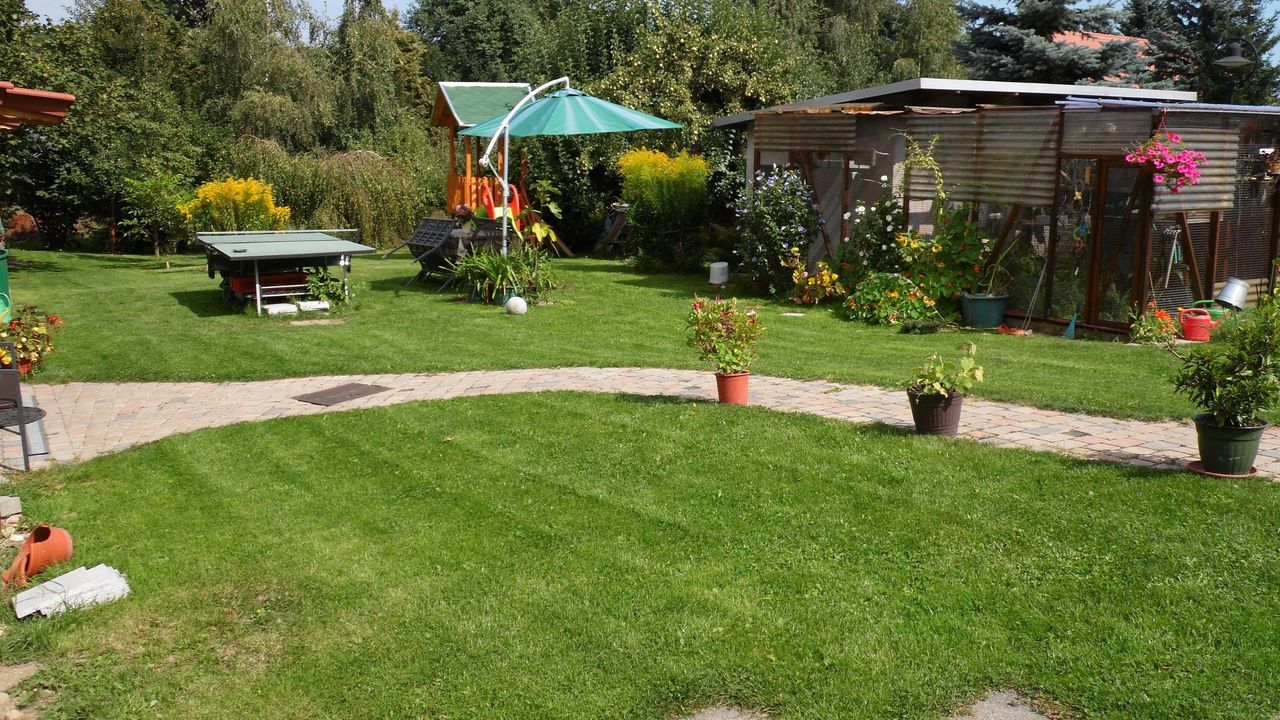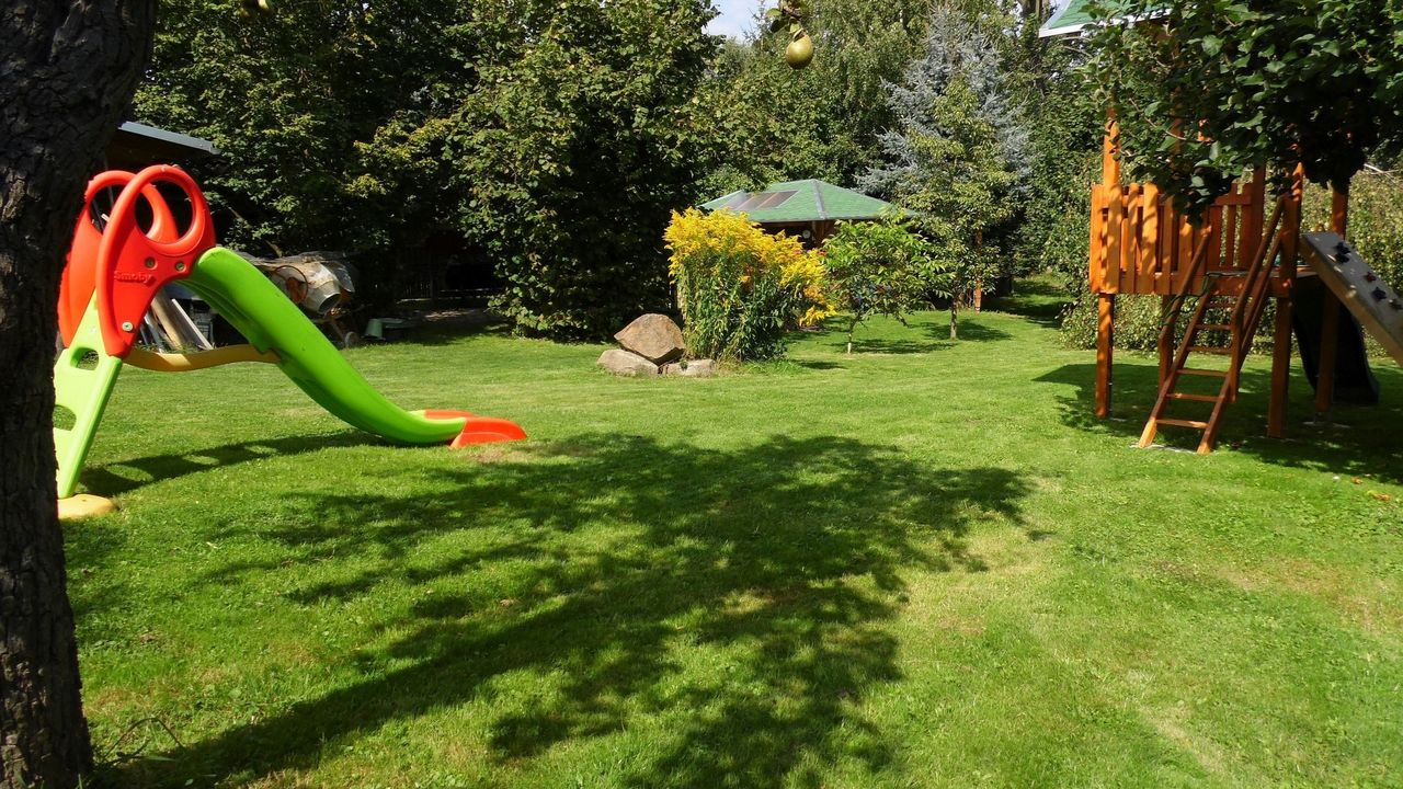 Am Wohnhaus befindet sich ein Blumen- und Gemüsegarten. Daran schließt sich eine große Spielwiese (mit Tischtennisplatte, Gartenschach, Trampolin( mit Obstbäumen (500qm) an. Eine Sitzecke für unsere Gäste mit Gartenmöbeln, Grillplatz und Spielgeräten ist auch im Garten vorhanden. An der Westseite des, Hauses befindet sich eine Terrasse, wo man die Abendsonne genießen kann. Fahrräder stehen zum ausleihen bereit. Parkplätze sind am Haus ausreichend vorhanden.