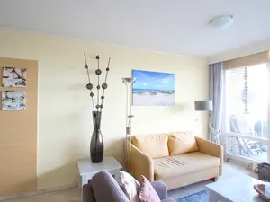 Es begrüßt Sie ein sehr geräumiges, helles Wohnzimmer mit zwei bequemen Sofas (davon ein Schlafsofa), Flat TV, DVD/CD Player und einem großen Balkon. Von hier aus haben Sie einen direkten und prächtigen Ausblick auf das Meer!
