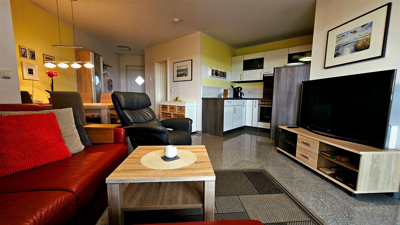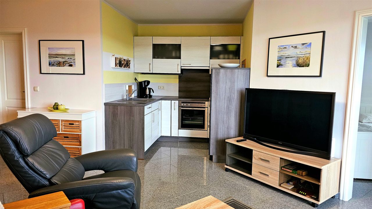 Wunderschöne Ferienwohnung für max. 3 Personen mit Kleinkind oder Hund. Eine eigene Fahrradgarage (abgeschlossen) für bis zu 4 Fahrräder ist im Preis inbegriffen. 1 Schlafzimmer mit Doppelbett 1,80x2.00m . 1 Wohnzimmer mit moderner Wohnküche, Essecke und vollwertiger, leicht bedienbarer, Klappcouch zum Bett 1,40x2,00m und großen 51 Zoll Plasma-Fernseher. Ein extra Kinderbett und Kinderhochstuhl ist kostenlos vorhanden. Die Ferienwohnungsanlage befindet sich direkt im Yachthafen und wurde im passenden Bäderarchitekturstil errichtet. Am Hafen befinden sich 2 hervorragende Restaurants und ein inselbekannter Fischladen der Fischerfamilie Ehmke. Sie werden das besondere Hafenflair genießen.Seebad Karlshagen