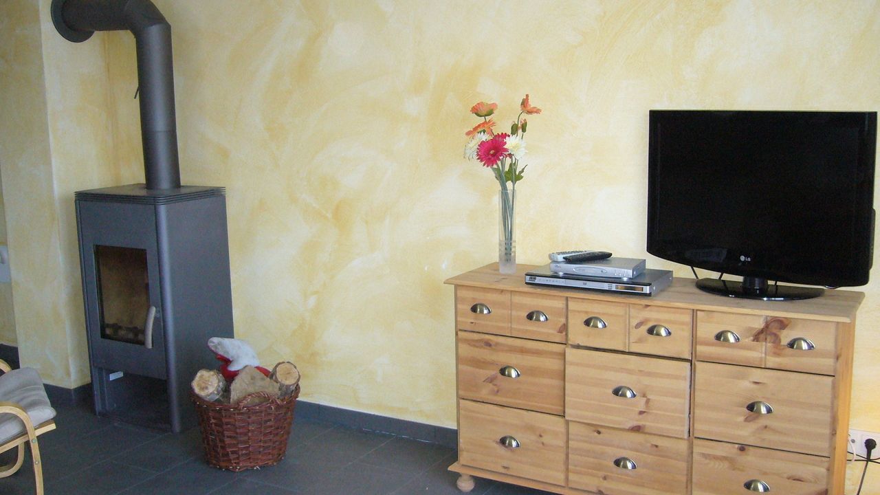 m Wohnbereich befindet sich eine komfortabel Sitzecke mit Polstermöbeln zum Entspannen sowie Sat-TV+DVD-Player.