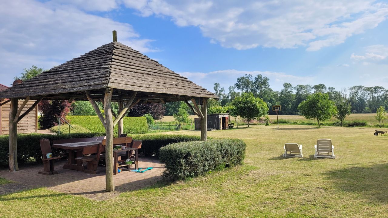 Waschmaschine mit Voranmeldung im separaten Gebäude nutzbar, Internet WLAN, Eierkocher, Geschirr, Geschirrhandtücher, Wäscheständer, Fahrradständer, Motorrad-Stellplatz, Fahrradunterstand, Sandkiste vorhandenSchlafplätze: 1 Doppelbett (140x210), 2 Einzelbetten (90x210)