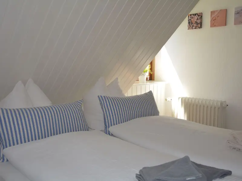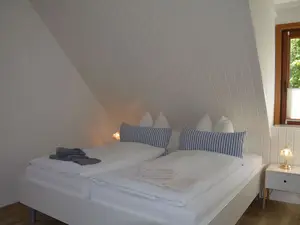Die Ferienwohnung befindet sich im Obergeschoss eines Ferienhauses. Das Wohn-/Esszimmer hat einen Ausgang zum eigenen Balkon mit Meerblick. In der gut ausgestatteten Küche können sie ihre Mahlzeiten zubereiten. Lassen sie sich dabei vom Blick über das Watt bis nach Föhr und Sylt inspirieren.Das große Schlafzimmer ist mit einem Doppelbett ausgestattet und hat direkten Zugang zum Bad. Das daran anschließende Kinderzimmer ist mit 2 Einzelkojen ausgebaut. Ideal für Familien mit Kindern.