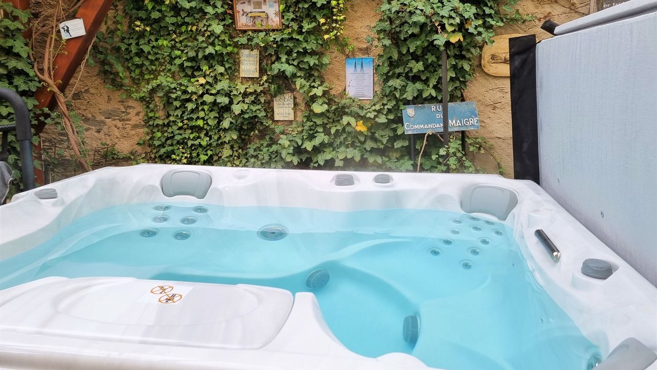 Spa-Terrasse mit Outdoor-Whirlpool und Luxus-Gasgrill von Weber