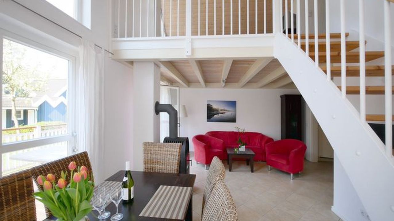 Dieses Reihenhaus (außen) mit 88 m² bietet auf zwei Ebenen Platz für 4+2 Personen mit 2 Schlafzimmern und einer offenen Schlafgalerie (Schlafsofa vorhanden), Sauna, Whirlpool und Kamin.Unsere Fotos zeigen Beispiele individuell unterschiedlicher Einrichtungen