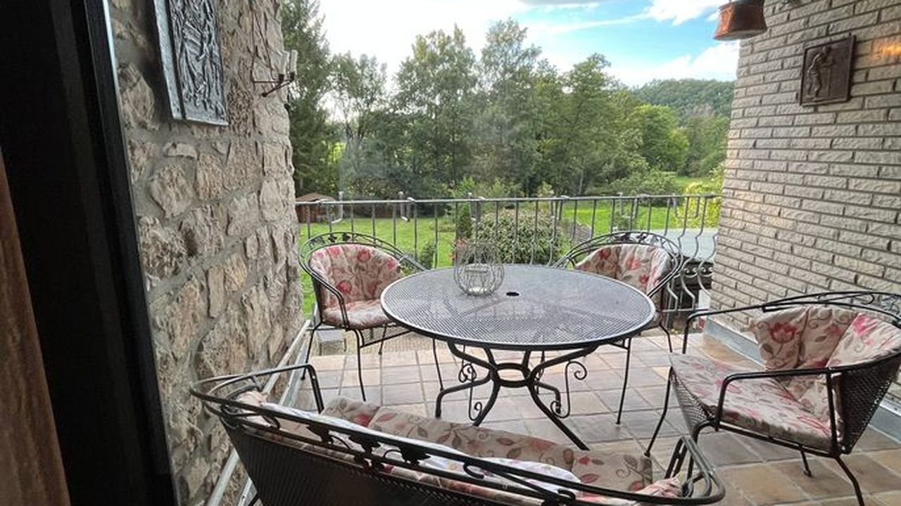 Wir begrüßen Sie in unserer traumhaften Ferienwohnung in einem wunderschönen, restaurierten Bruchsteinhaus mit großer Loggia und tollem Grundstück mit Bachlauf.Das Bruchsteinhaus wurde vor über 100 Jahren aus den Bruchsteinen der örtlichen Steinbrüche auf einem großen Grundstück am Ortseingang in freier Lage und wunderschöne Aussicht auf die Natur errichtet.