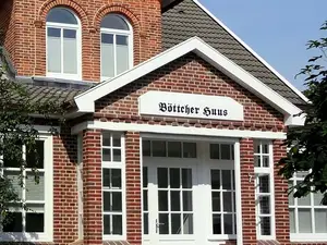 Das -BÖTTCHER HUUS- ist ein traditionelles im friesischem Stil erbaute und 2013 komplett renoviertes Friesenhaus.Die Ferienwohnung 1 im Hochparterre dieses wunderschön restaurierten Altbaus, erreichen Sie durch einen Windfang und befinden sich gleich darauf im lichtdurchfluteten Wohn-Essbereich mit einer modernen, voll ausgestatteten Küche. Die Terrasse mit Sitzecke und Strandkorb erreicht man vom Küchenbereich aus, mit Blick ins Grüne. In den beiden Schlafzimmern sind zum einen ein Doppelbett und zum anderen 2 nebeneinander stehende Einzelbetten. Das helle, freundliche Bad hat Dusche und WC.