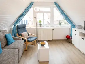 | Wohnzimmer | In dem freundlichen Wohnzimmer mit seiner umfangreichen Ausstattung und bequemen Sitzmöglichkeiten erleben Sie während Ihres Inselurlaubs spannende Krimiabende auf Langeoog. Oder Sie legen die Beine hoch und genießen es, in Ruhe ein Buch zu lesen. Ganz wie Sie mögen. |