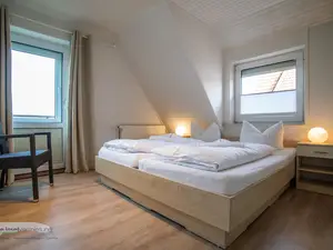 Schlafzimmer | In beiden Schlafzimmern befinden sich je zwei Schlafplätze. Ein gemütliches Doppelbett und zwei Einzelbetten sorgen für süße Träume auf der Insel. |