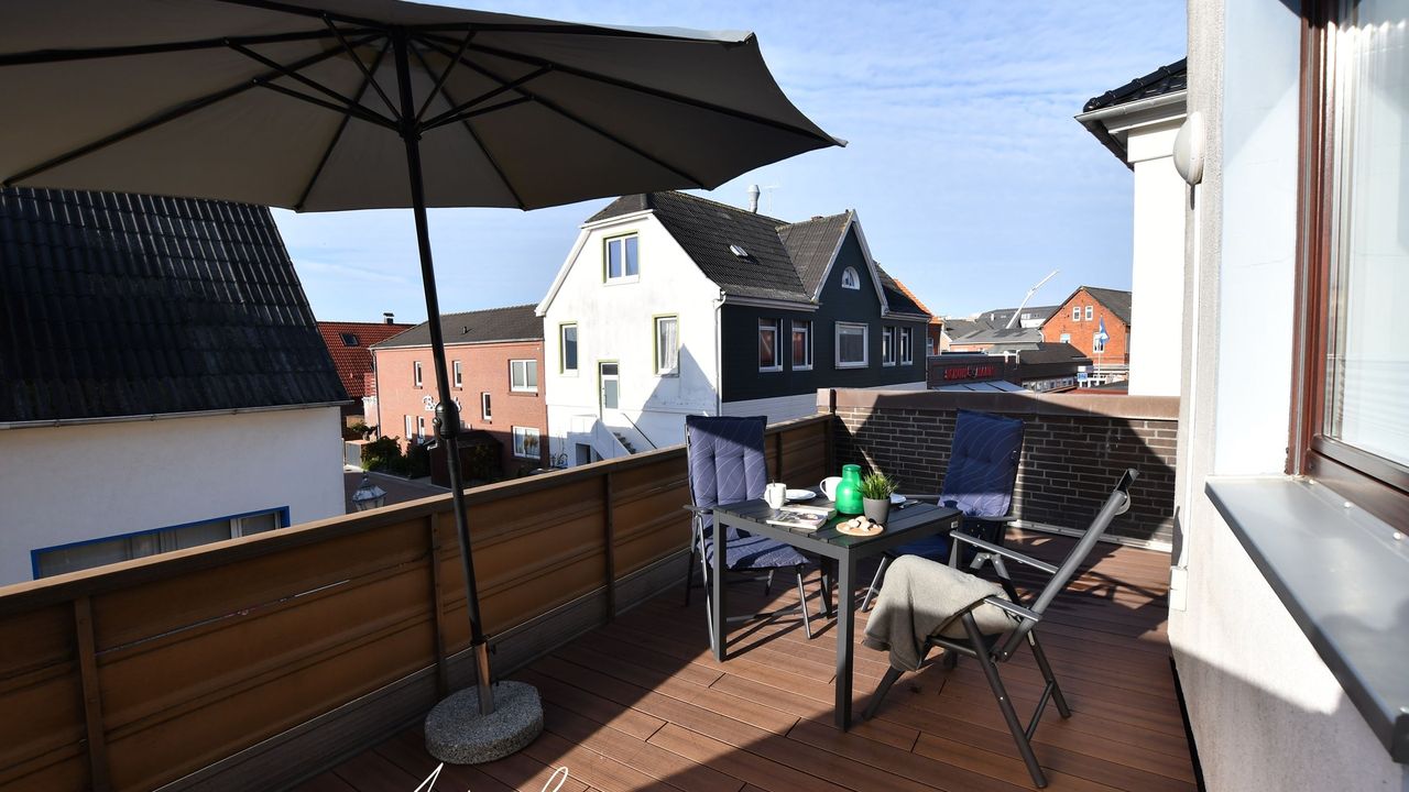 Von dem großen Balkon aus nehmen Sie teil am quirligen Stadtleben. Die Wohnung selbst liegt in der ersten Etage und bietet viel Raum für zwei Personen. Ein gemütliches Sofa, einen Essplatz am Fenster, eine kleine Küche um ein herrliches Frühstück zu bereiten und natürlich ein Schlafzimmer mit Doppelbett. Das Bad verfügt über eine Dusche mit höherem Einstieg, WC und Waschbecken. Im Winter versorgt Sie die Zentralheizung mit angenehmer Wärme. An TV, Radio und W-Lan für schlechtes Wetter ist auch gedacht worden. Wir wünschen einen angenehmen Aufenthalt