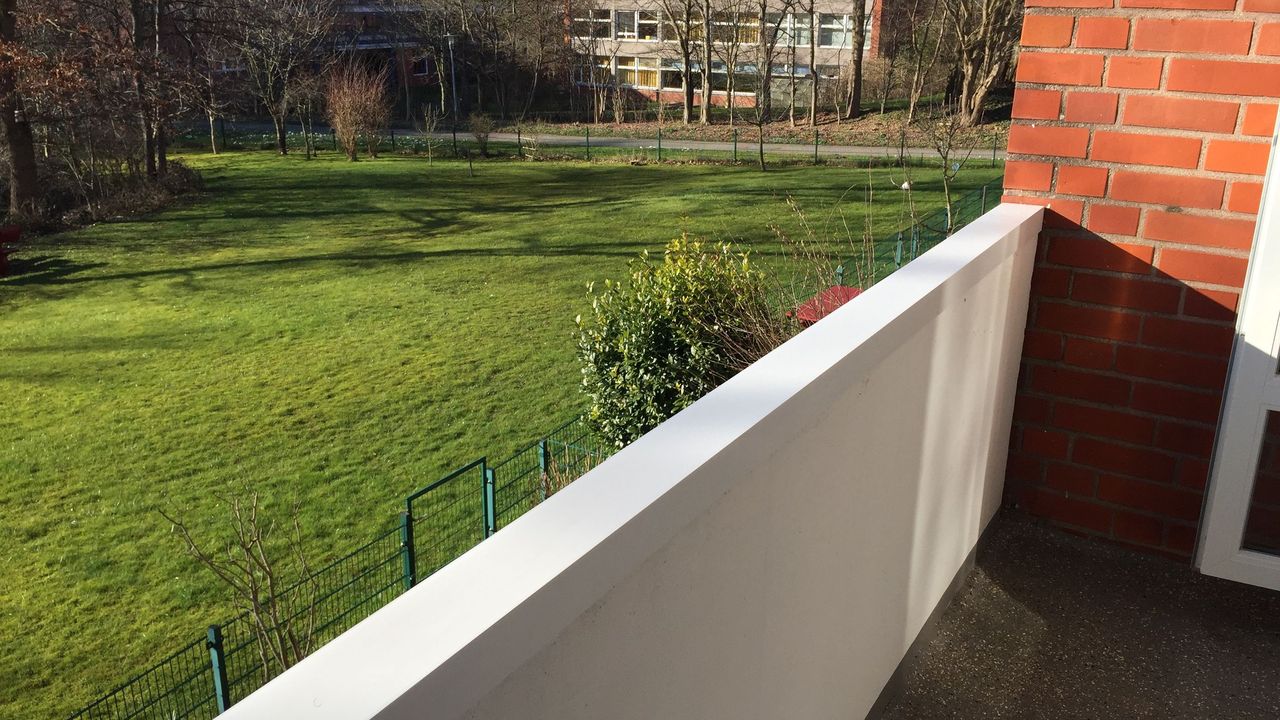 Genießen Sie die frische Luft auf dem überdachten Balkon mit Gartenmöbeln – der perfekte Ort für einen entspannten Abend bei einem Glas Wein.