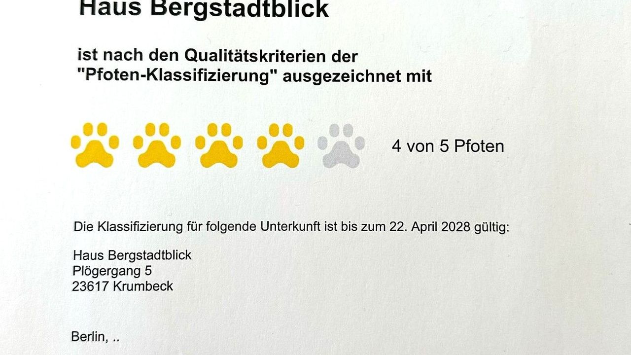 Detaillierte Angaben zum Urlaub mit Hund finden Sie zusätzlich in der Beschreibung der Unterkunft und beim Klick auf „Alle Ausstattungen“ im Exposé.