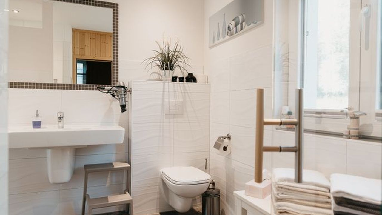 Das Haus hat 3 Bäder, im Erdgeschoss befindet sich ein Saunabad mit einer bodengleicher freibegehbarer Dusche. Das exklusive Bad im ersten 1.EG mit Badewanne, bodengleicher Dusche lädt zum relaxen ein.Das Highlight des Hauses ist das Schlafzimmer im Spitzboden für Ihre Kinder: Balken-Doppelbett (180x200cm) für Räuber, Nachtablagen, kleiner Kleiderschrank. Zugang zur Räuberhöhle.Damit Ihre Kinder Ihre eigene Etage haben, befindet sich im Spitzboden ein kleines Kinderbad mit: Dusche, WC und Waschbecken.