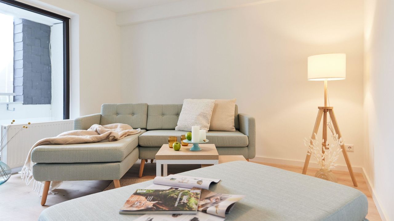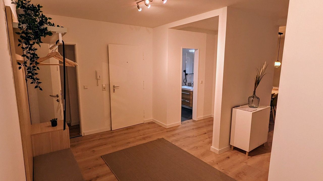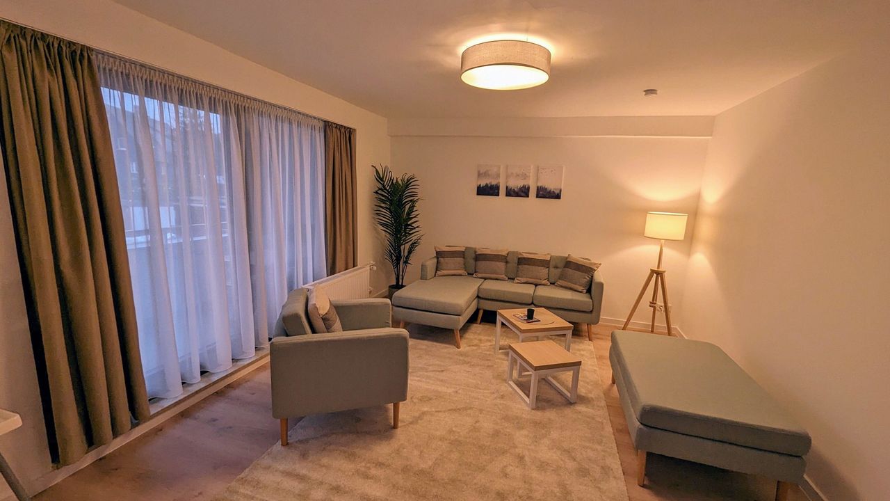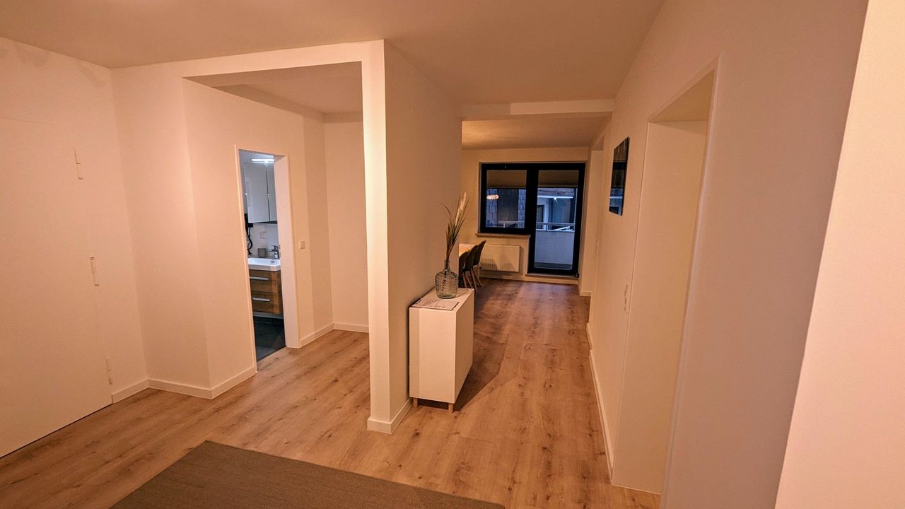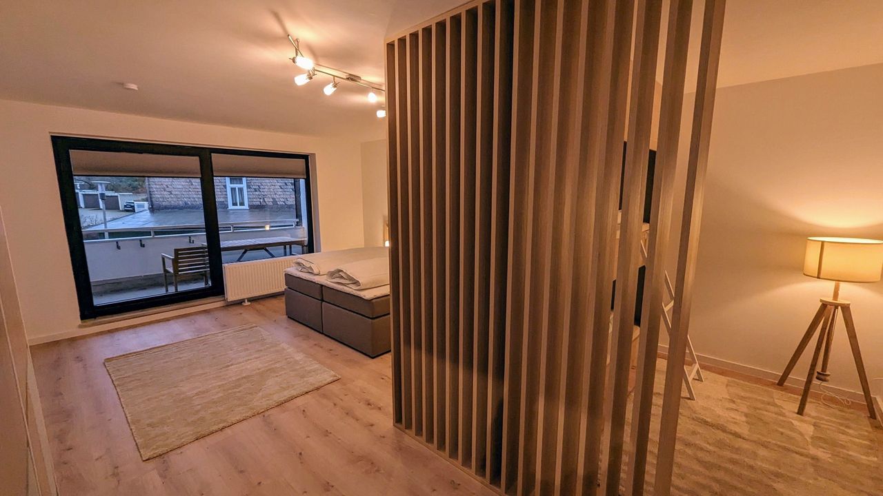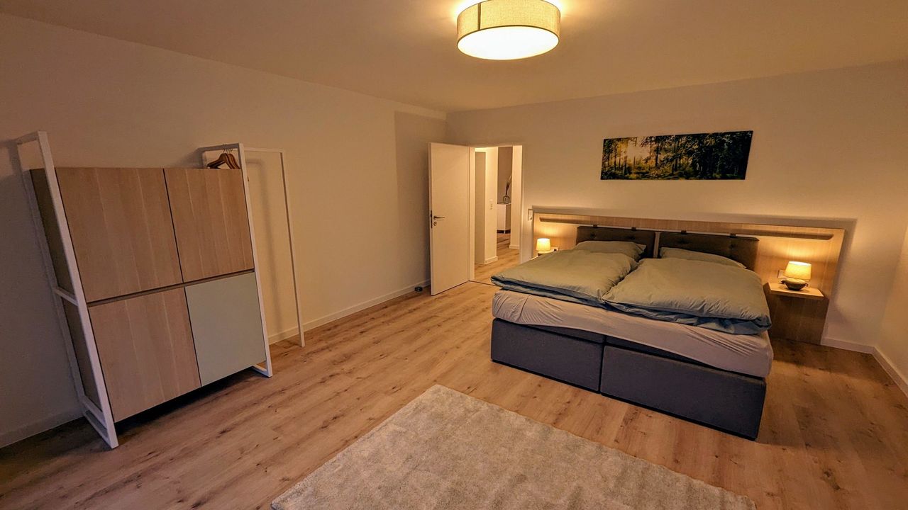 Hier finden Sie auf 135m2 eine moderne und helle Wohnung. Diese verfügt über ein Schlafzimmer mit Doppelbett, einem Schlafzimmer mit Doppelbett sowie durch einen modernen Raumteiler abgetrennten Bereich ein Stockbett.