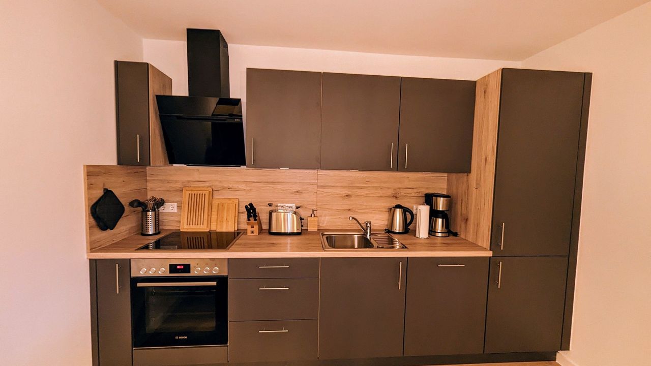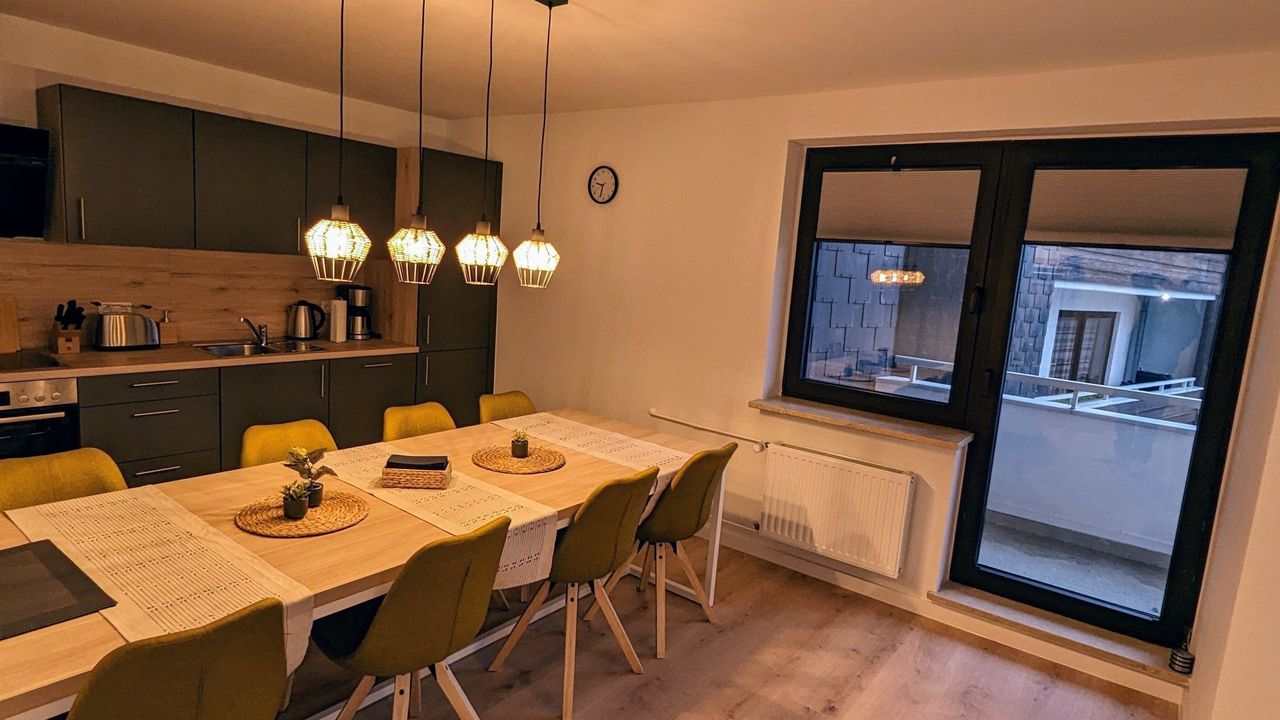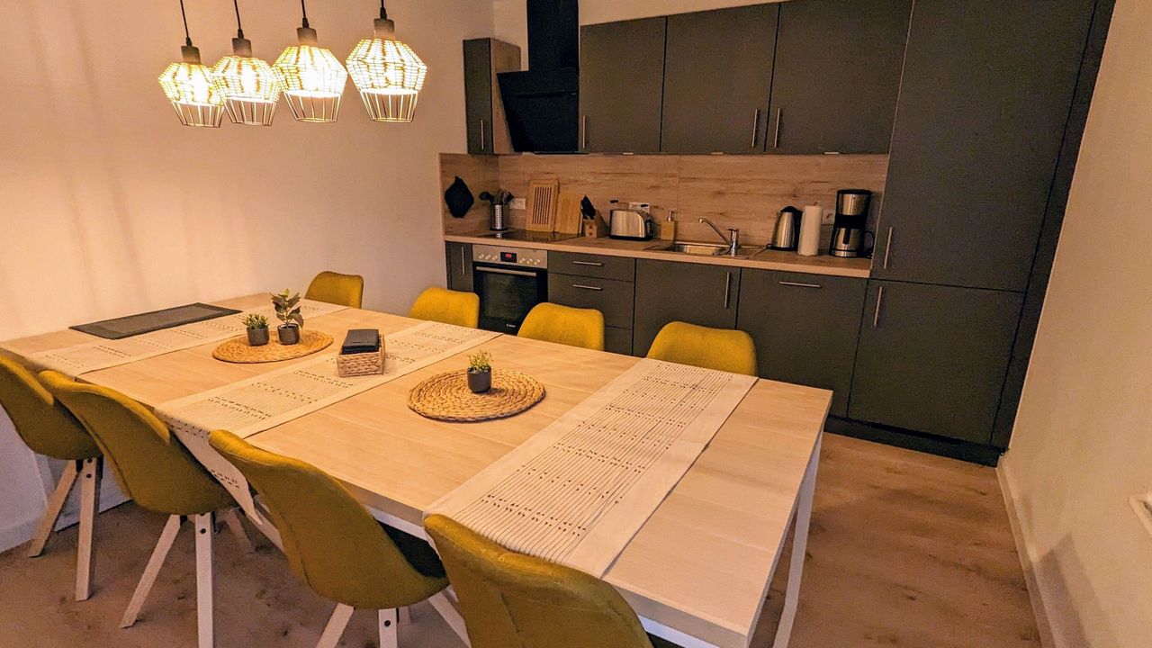 Ein kleines Highlight ist der Wohn-Essbereich. Hier finden Sie alle an einem großen Tisch Platz und können nach einem gemeinsamen Frühstück in den Tag starten. Die vorhandene Küche ist voll ausgestattet und verfügt über alle gängigen Geräte.