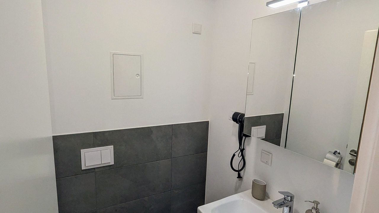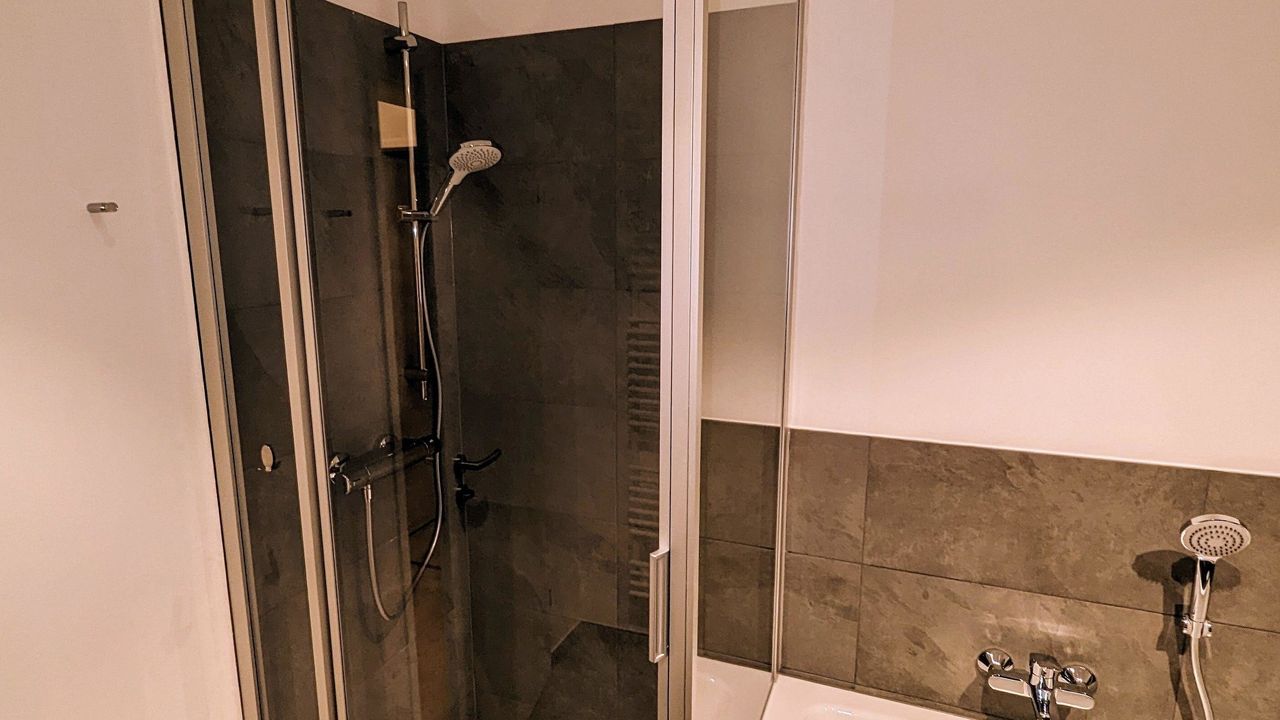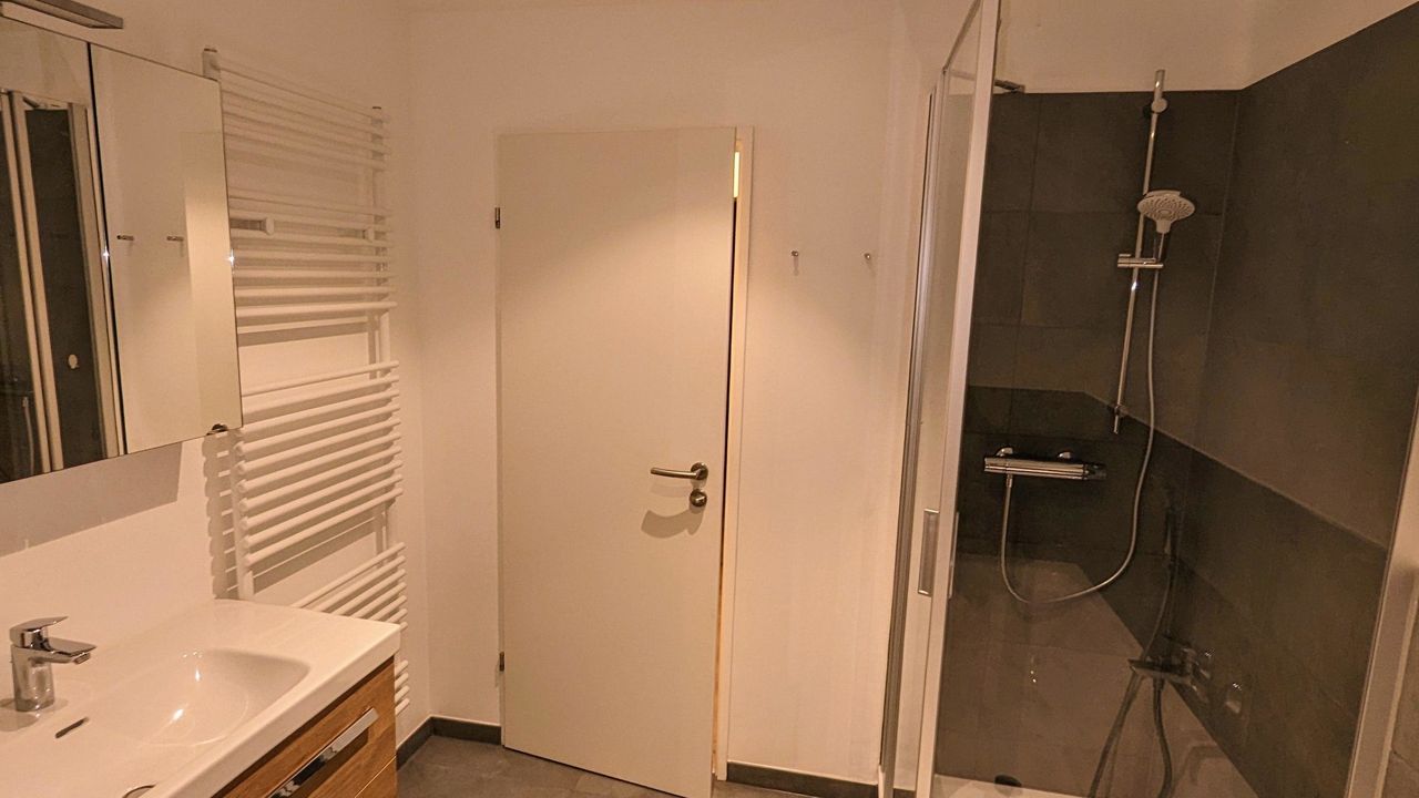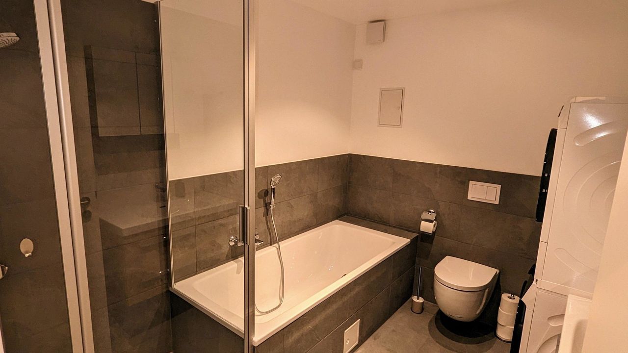 Sie finden hier ein Vollbad vor, welches zusätzlich mit einer Waschmaschine sowie einem Trockner ausgestattet ist. Ein Gäste-WC ist ebenso vorhanden.