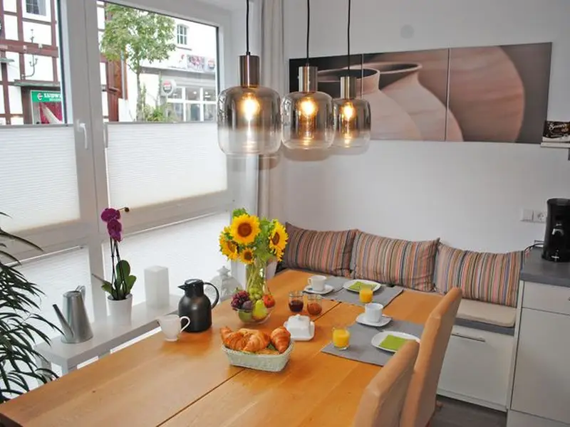 • 3-Zimmer-Wohnung im Erdgeschoss (60 qm) für bis zu 4 Personen;• 1 große Wohnküche mit Esstisch, Sofalandschaft, Sessel und Flat-TV;