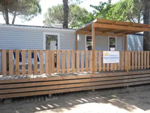 Mobilehome mit Klimaanlage, Terrasse und WasserparkDas einzeln stehende Mobilehome ist zweckmäßig eingerichtet. Das Grundstück befindet sich in einer Ferienanlage. Auch wegen der sonnigen Lage am Wasser ist das Domizil beliebt. Zur Nutzung stehen zur Verfügung: Sonnenschirm, Sonnenliege, Kinderspielplatz, Grillmöglichkeit, Terrasse und Gartenmöbel.