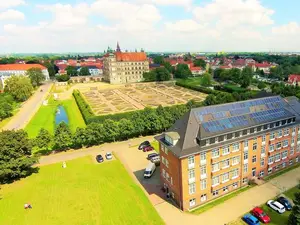 Das 3*** Superior Hotel am Schlosspark ist ein privat geführtes Haus der gehobenen Mttelklasse in bester Lage am Rande der historischen Altstadt mit Blick auf das Schloss, mit dem Restaurant Wallenstein, Terrasse, diversen Tagungskapazitäten für bis zu 100 Personen, großem Foyer, Bar, 24h-Rezeption, Panorama-Sauna, Fahrstuhl, Fahrradkeller, Fahrradverleih, ausreichend kostenlosen Parkplätzen für PKW und Busse. Alle Standardzimmer sind mit DU,WC, Full-HD TV, Highspeed Glasfaser W-Lan, Black-out Verdunklungsgardinen, Fön und Sessel ausgestattet.Lage