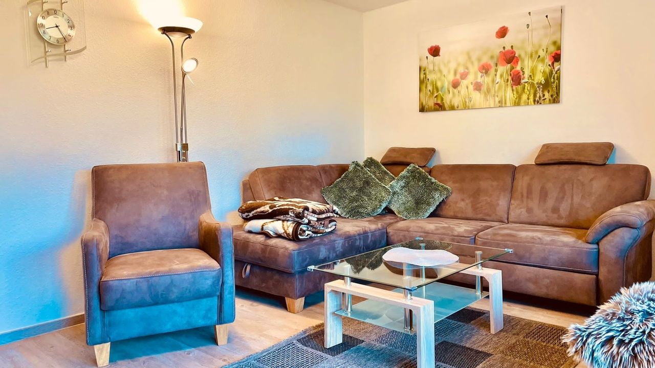 Im barrierefreien Erdgeschoss befinden sich eine geräumige Diele, Wohnzimmer mit Couch, Sessel und einem Relaxsessel , Duschbad mit Wickeltisch, 1 Schlafzimmer mit 2 Einzelbetten 0,90 x 2,00 m und geräumigem Kleiderschrank. Die neu eingerichtete Küche ist voll ausgestattet. Angrenzend befindet sich das gemütliche Esszimmer mit Kinderhochstuhl. Im Hauswirtschaftsraum stehen eine Waschmaschine und ein Trockner für die Gäste bereit.