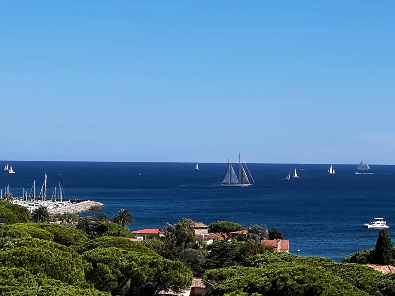 Klimatisierte Wohnung mit grossem Meerblick auf den Golf von Saint-Tropez im geschlossene Domaine de la croisette mit Schwimmbad ca. 400m vom Strand.Die Wohnung ist frisch renoviert und sehr geschmackvoll eingerichtet.