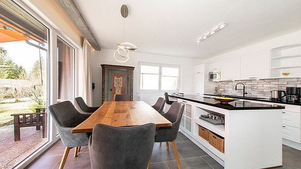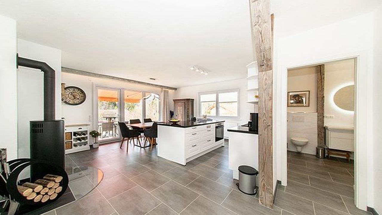 Wir haben unser Fereinhaus vollkommen renoviert und so saniert, wie wir uns ein Ferienhaus vorstellen. Genießen Sie die schönsten Tage des Jahres in traumhafer Landschaft mit freiem Blick auf die umliegenden Berge.Die offene Wohnküche mit einem großen Esstsich und Kamin bilden das Herzstück des Hauses. Die Kücheninsel mit Bora-Kochfeld lädt zum gemeinsamen Kochen ein. Ein großer Kühlschrank, ein Gefrierschrank sowie eine Spülmaschine und eine Mikrowelle sind selbstverständlich ebenfalls vorhanden. Der Kamin sorgt für gemütliche Wärme an kalten oder grauen Tagen.
