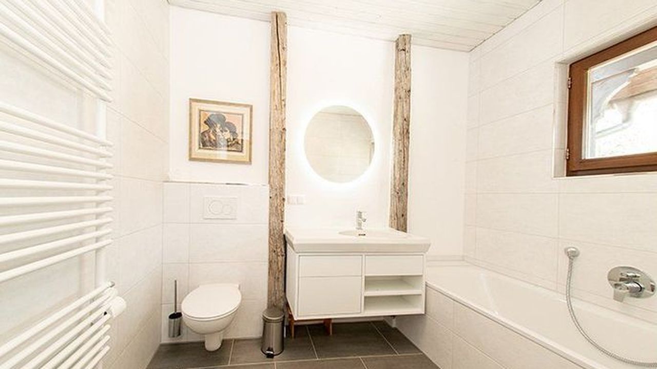 Ihnen stehen zwei vollwertige Badezimmer zur Verfügung. Eines mit Badewanne/WC und eines mit Dusche/WC.