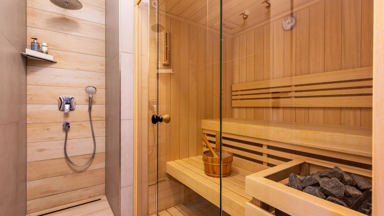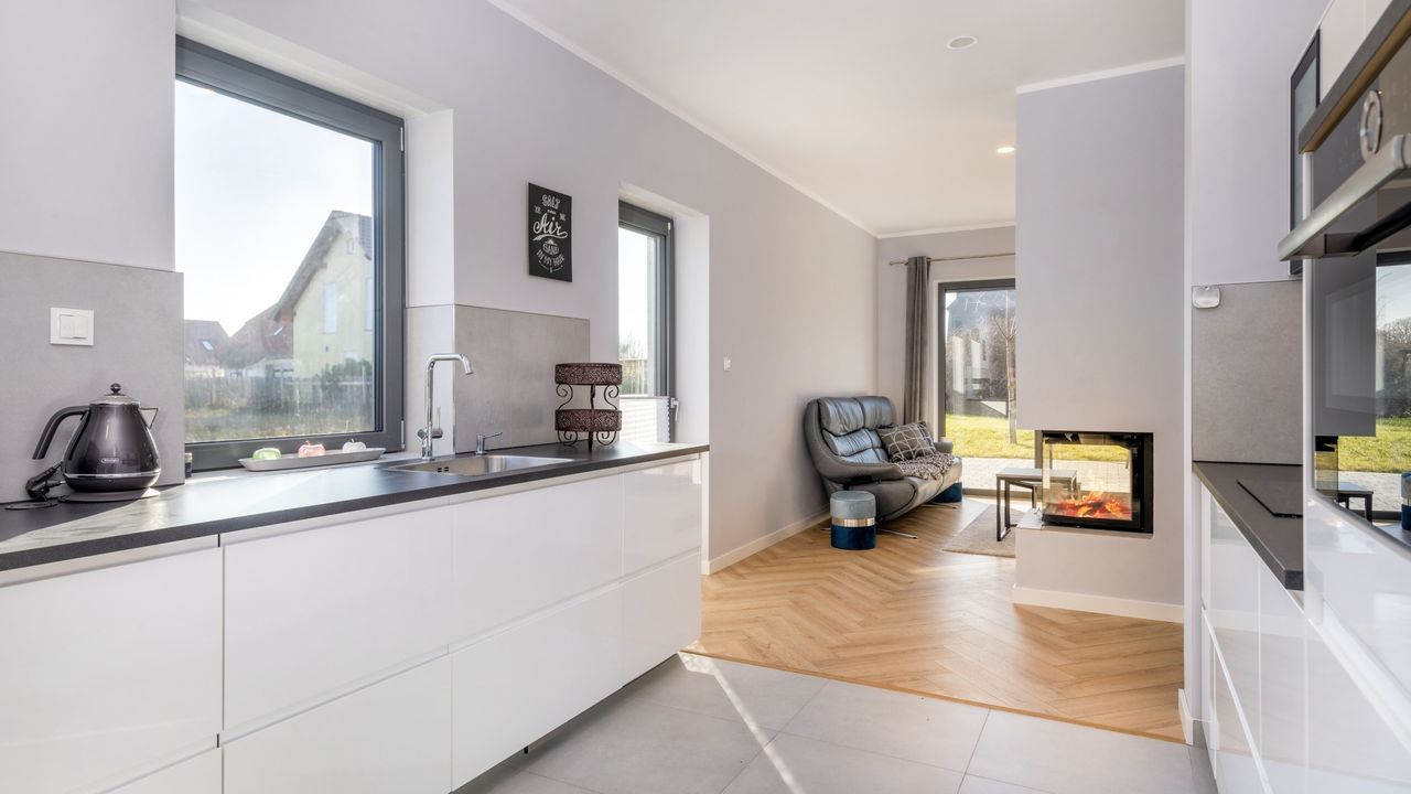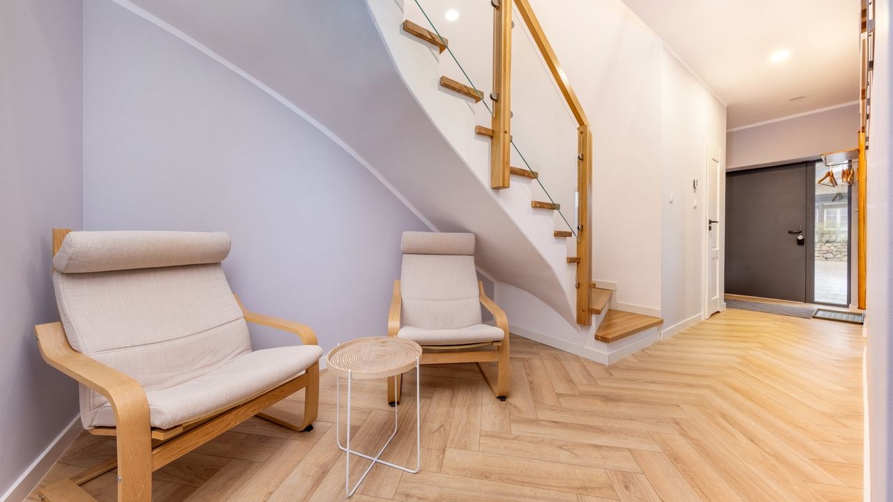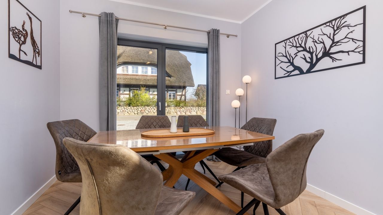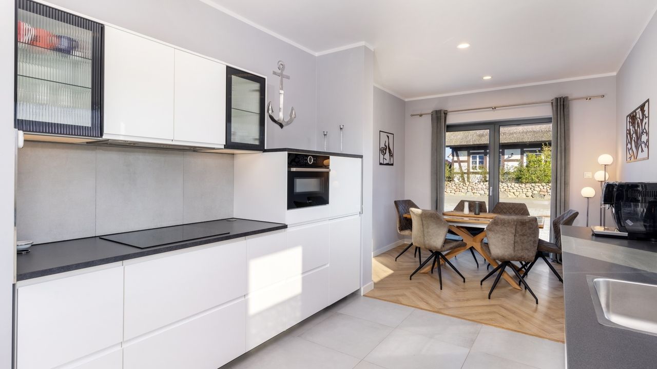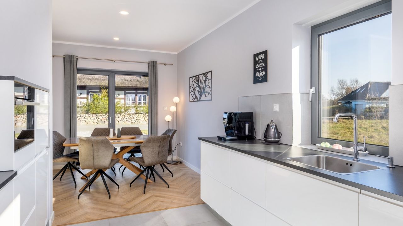 Sie finden auf 2 Ebenen alles, was für einen gelungenen Urlaub notwendig ist. Die Wohnfläche beträgt ca. 110 m². Betreten wird das Ferienhaus über den Eingang im Erdgeschoss. Von dort aus gelangen Sie in die Küche, Gäste-WC, sowie auch in den besonders lichtdurchfluteten Ess- und Wohnbereich, mit einer gemütlichen Couch. Im Erdgeschoss finden Sie Ihre ganz private Sauna, eine moderne und vollausgestattete Küche sowie ein gemütliche Wohn-/Essbereich mit Panoramakamin, für gemütliche Stunden in der kühleren Jahreszeit. Ebenso einen großen Esstisch, der auch gern zu Spieleabenden einlädt. Genießen Sie die gemeinsame Zeit am großen Esstisch für 6 Personen.Die offene, moderne Küche bietet Ihnen alles, was Sie in Ihrem Urlaub zum Kochen benötigen. Die gemütliche Atmosphäre im Wohnbereich ist ideal für Familie und Freunde und ist mit einem großen Smart-TV ausgestattet. An kalten Tagen und Abenden sorgt der Kamin für kuschelige Wohlfühlatmosphäre. Die Sauna mit Dusche erreichen Sie direkt vom Flur aus.