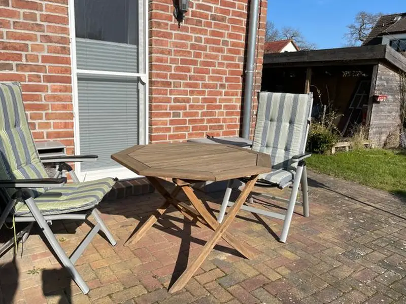 Wir vermieten unsere kleine Ferienwohnung an max. zwei Personen. In der Ferienwohnung befindet sich ein Bett welches über Tag als Couch benutzt werden kann. Bei einer Belegung mit zwei Personen kann diese als Doppelbett (1,6 m x 2,00 m) genutzt werden. In dem Wohn- und Schlafraum befindet sich eine kleine Küche für die Selbstversorgung. Das Bad ist übersichtlich und geräumig.Sie können die anliegende Terrasse (1 Stufe) nutzen.
