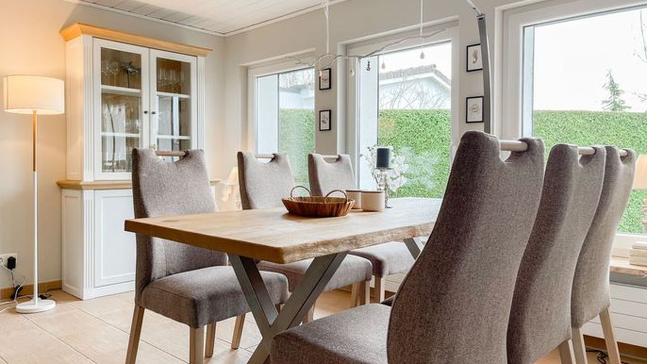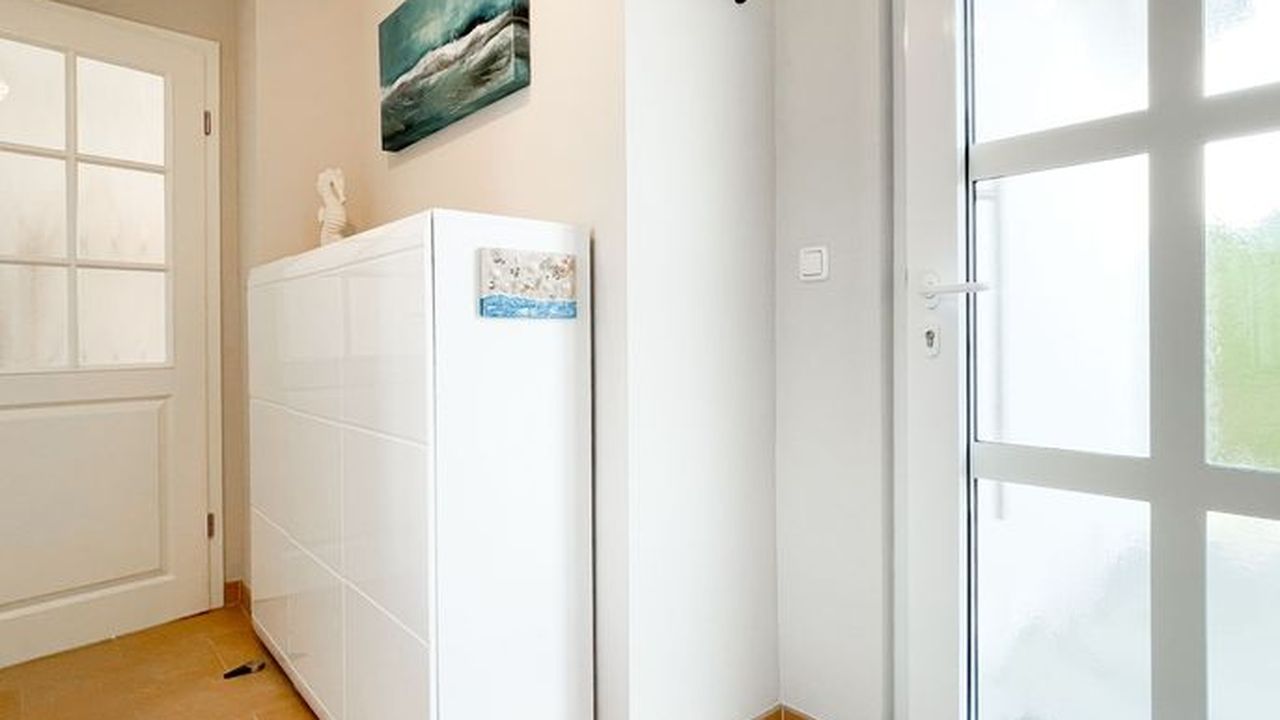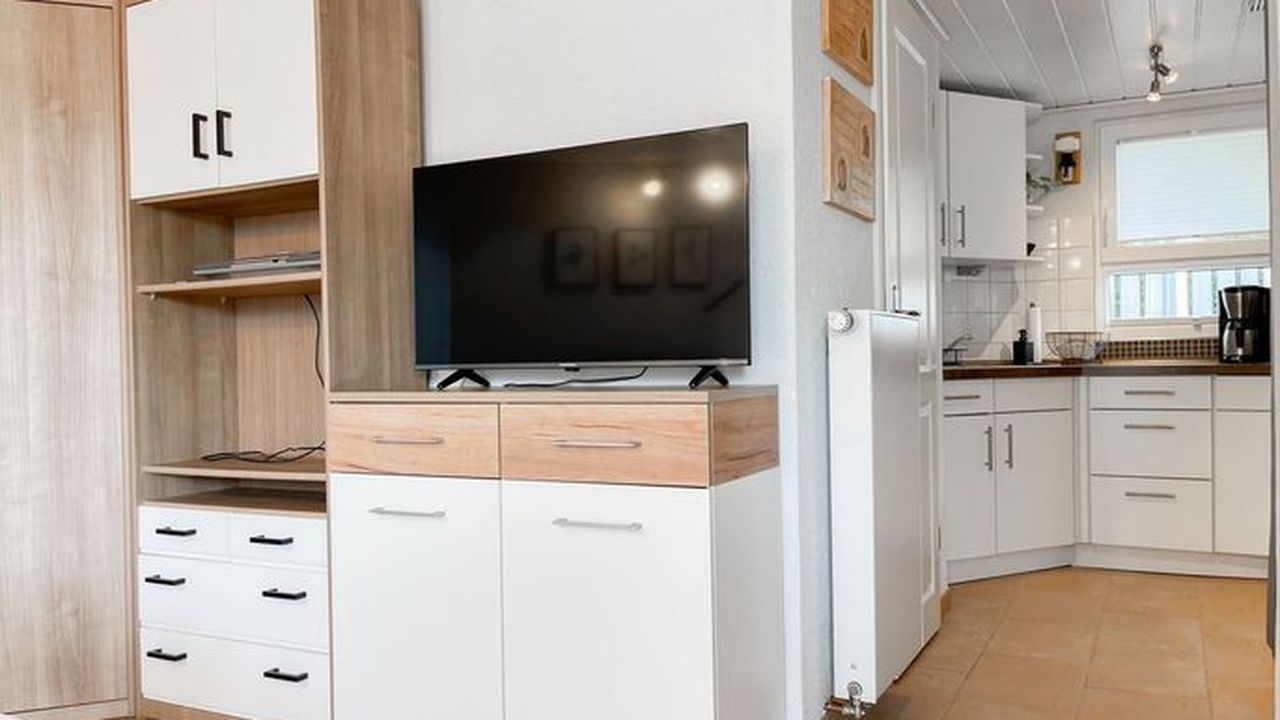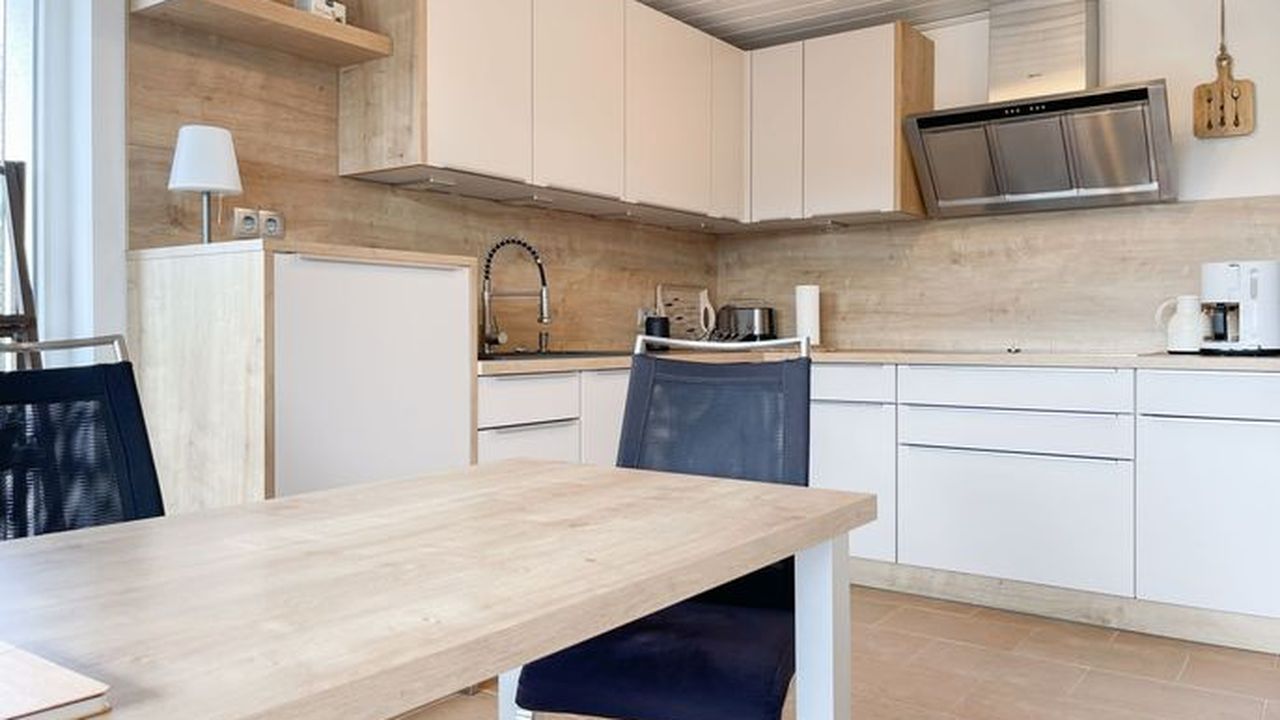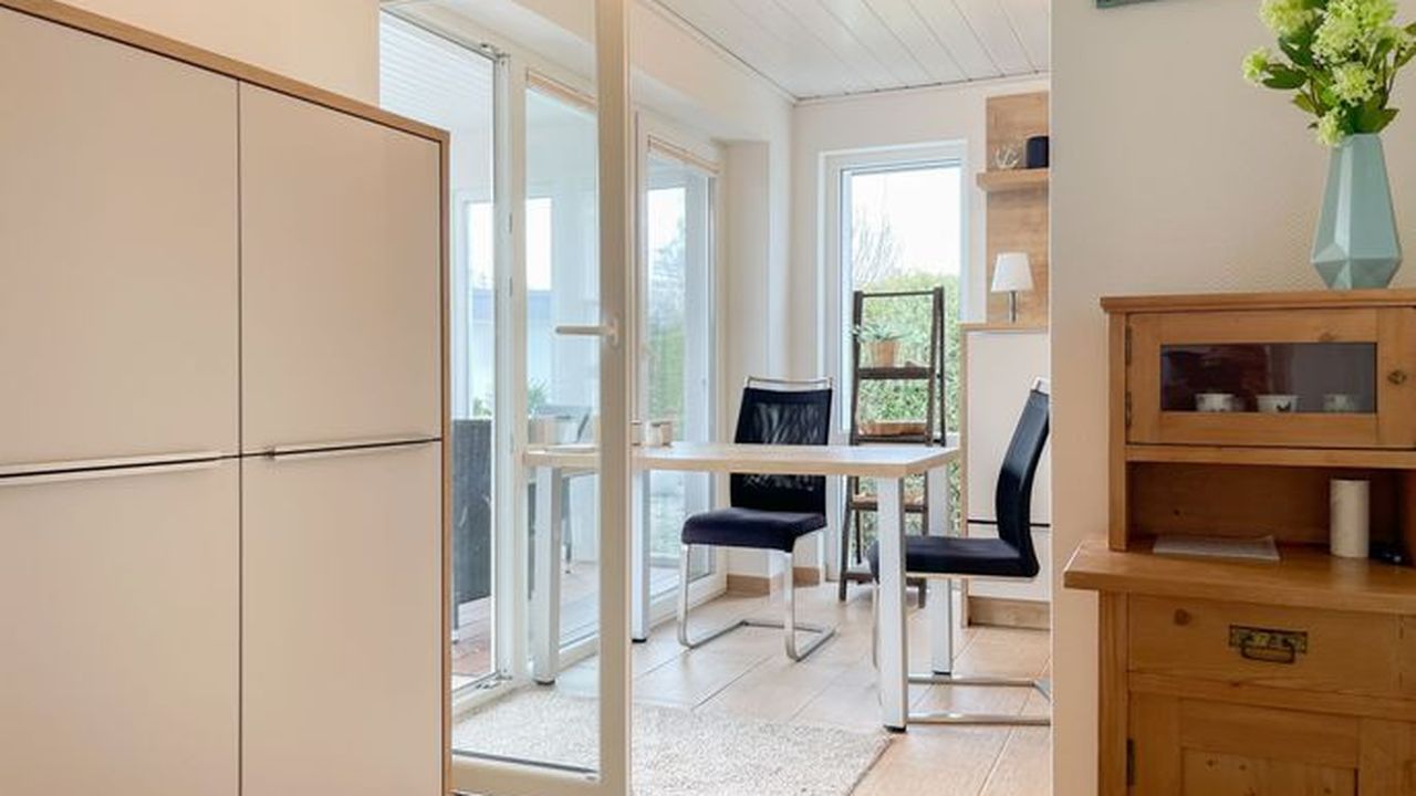 Das Objekt besteht aus 2 Wohneinheiten mit separaten Eingängen, die direkt nebeneinander liegen. Die Hauptwohneinheit bietet auf ca. 75 qm ausreichend Platz für eine Familie bis zu 5 Personen. Es erwartet Sie ein lichtdurchfluteter Wohnbereich mit wunderschönem Blick in den weitläufigen Garten; eingerichtet mit einem Sofa und einem großzügigen Essbereich für gemeinsame Mahlzeiten, Spieleabende oder gemütliches Beisammensein. Hobbyköche können sich freuen, denn die Küche ist mit allen technischen Geräten bis zur integrierten Waschmaschine perfekt ausgestattet. Der überdachte Bereich der Terrasse schließt sich direkt an die Küche an, sodass kurze Wege für Outdoor Mahlzeiten garantiert sind. Es gibt ein kleines Schlafzimmer mit einem Einzelbett (90x200) sowie zwei weitere Schlafzimmer mit Doppelbetten (160x200 und 140x200), die über das Bad zu erreichen sind. Das separate Studio (Deckenhöhe 209 cm) ist mit einem Schlafsofa (140x200), einem Relaxsessel, Kleiderschrank, TV und einem Essbereich für 2 Personen eingerichtet. Es gibt ein weiteres Duschbad sowie eine kleine Küche mit Kühlschrank, kleiner Kochplatte, Kaffeemaschine, Wasserkocher, Toaster, Waschmaschine und Trockner.