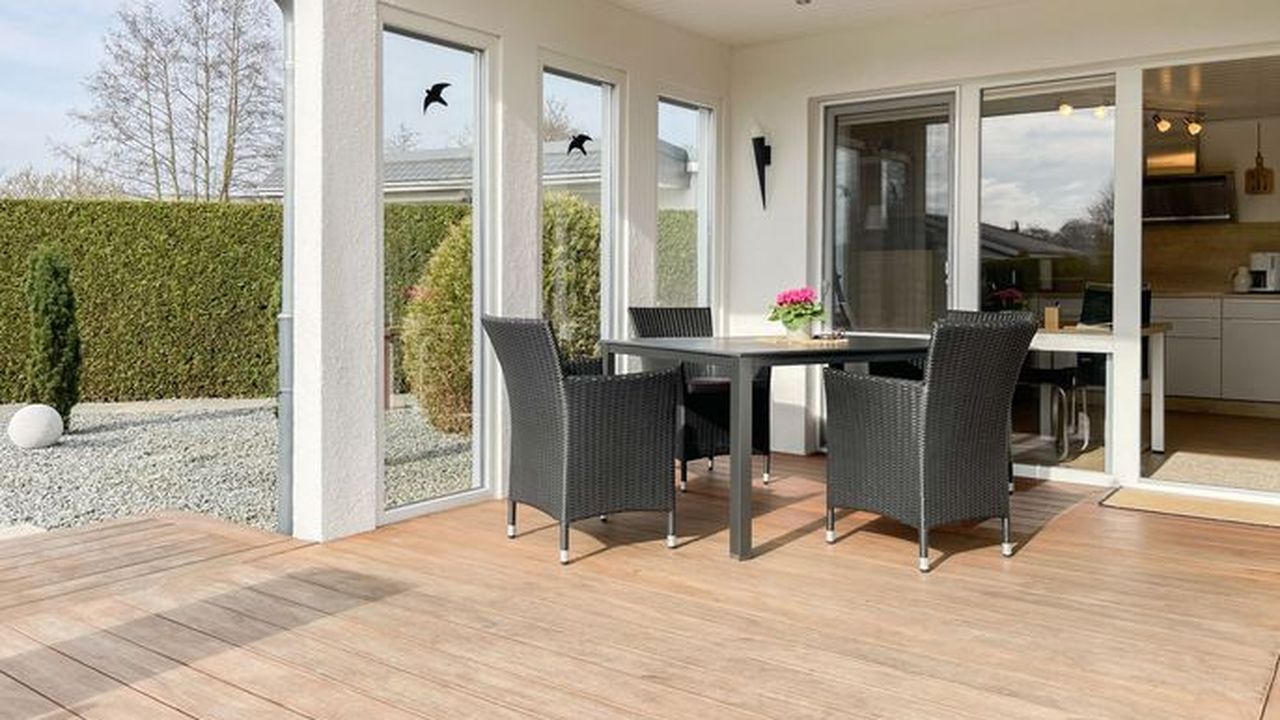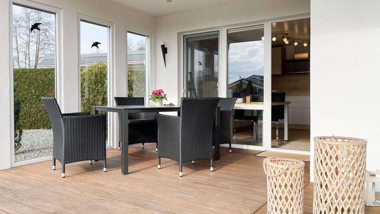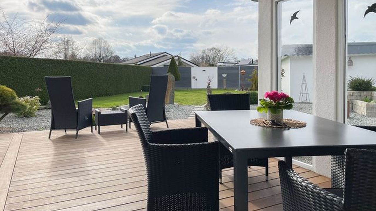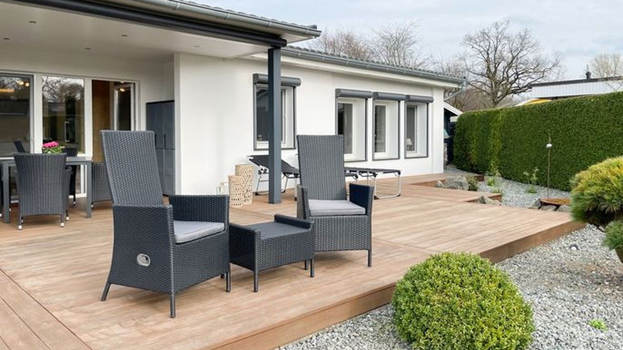 Das Ferienhaus Sonnendeck liegt im ruhigen Ferienhausgebiet von Niendorf/Ostsee, einem Ortsteil von Timmendorfer Strand, mitten im Naturschutzgebiet. Die Ostsee, der schöne Sandstrand und die Promenade sowie der lebendige Niendorfer Hafen sind ca. 650 m entfernt und bequem in wenigen Minuten zu Fuß zu erreichen.[nbsp] Hier gibt es neben fangfrischem Fisch und den leckersten Fischbrötchen auch verschiedene Restaurants und Cafés sowie einen Bäcker, einen Fahrradverleih und einen Abenteuerspielplatz.Das Ferienhaus Sonnendeck erfreut sich einer großzügigen, umzäunten Gartenanlage in Südwestlage, die absolute Privatsphäre garantiert. Ein Highlight ist die traumhafte Terrasse mit teilweiser Überdachung und windgeschütztem Bereich, perfekt ausgestattet mit Sonnenliegen, Gartenmöbeln und einer elektrischen Markise für entspannte Stunden im Freien. Für erholsame Momente sorgt die Infrarotsauna, die sich in einem separaten Saunahaus befindet. Hier finden Sie den idealen Ort, um Ihren Urlaub in vollen Zügen zu genießen. Das Haus verfügt über zwei moderne Bäder, zwei Küchen, komfortable Schlafzimmer mit TV, elektrische Außenjalousien, Insektenschutzgitter, WLAN, Bluetooth-Radio und vieles mehr. Eine Garage mit elektrischem Tor bietet Platz für einen PKW und Fahrräder sowie die Lademöglichkeit für E-Bikes, während ein weiterer Stellplatz auf dem Grundstück vorhanden ist.