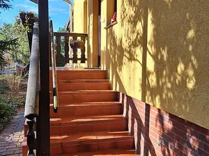 Mit unserem Treppenlift gelangen auch Personen mit Handicap ins Obergeschoss. Jedoch muss die Außentreppe (siehe Foto) überwunden werden.
