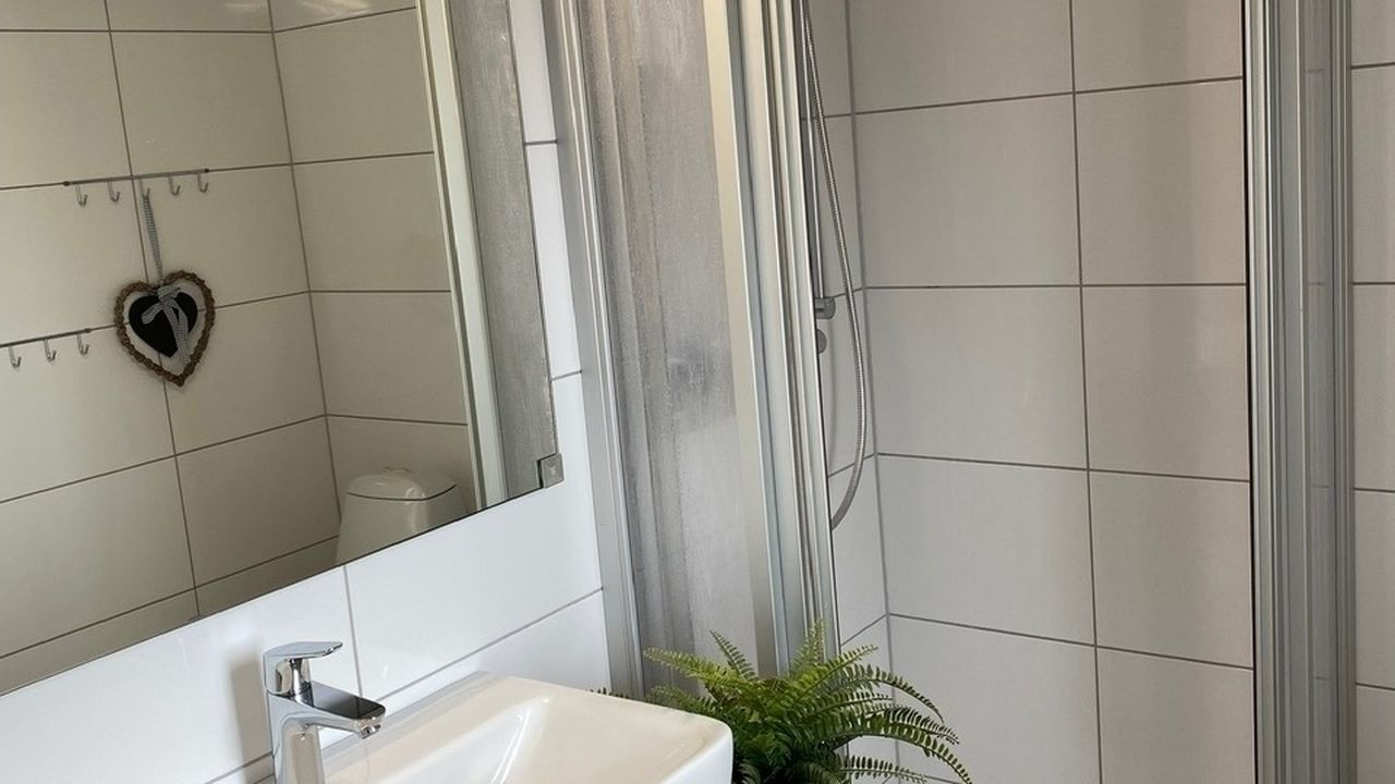 Im Erdgeschoß befindet sich ein Duschbad mit WC und Waschbecken.
