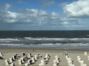 | Wohnzimmer | Vom Wohnzimmer aus haben Sie einen grandiosen Blick auf die Nordsee. Sie bekommen das Treiben am Strand und alle vorbeifahrenden Schiffe mit. Vom Wohnzimmer haben Sie direkten Zugang zum nach Norden ausgerichteten Balkon. |