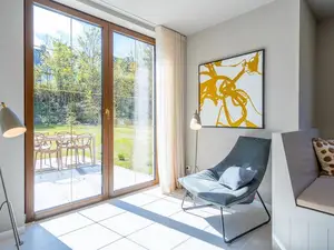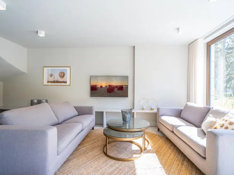Willkommen in der charmanten Reetdach-Doppelhaushälfte N° 3, eingebettet in die malerische Landschaft des Seebads Bansin. Dieses geräumige Domizil erstreckt sich über drei Etagen und bietet Platz für bis zu 8 Erwachsene, ideal für einen unvergesslichen Aufenthalt an der Ostseeküste. Im Erdgeschoss erwartet Sie ein einladender offener Wohn- und Essbereich, der perfekt ist für gemeinsame Momente mit Familie und Freunden. Die voll ausgestattete Küche verfügt über alle Annehmlichkeiten, die Sie für die Zubereitung köstlicher Mahlzeiten benötigen, einschließlich eines Essplatzes für 8 Personen. Eine gemütliche Sitzgruppe mit einem Flat-TV und einem Kaminofen lädt zum Entspannen ein. Von hier aus gelangen Sie auf die sonnige Süd-West-Terrasse , die perfekt ist, um den Garten die frische Luft zu genießen. Ein weiteres Highlight des Erdgeschosses ist das moderne Bad mit einer Finnischen Sauna, einer erfrischenden Dusche, einem Waschtisch und einem WC. Ein Waschtrockner im Flurschrank bietet zusätzlichen Komfort während Ihres Aufenthalts. Im ersten Stockwerk finden Sie drei komfortable Schlafzimmer, jeweils ausgestattet mit gemütlichen Boxspringdoppelbetten , einem Einbaukleiderschrank und zwei davon mit einem Flat-TV. Zwei der Schlafzimmer verfügen außerdem über Zugang zum Süd-West-Balkon, der einen herrlichen Blick ins Grüne bietet. Ein zweites Badezimmer mit Dusche, Waschtisch und WC vervollständigt diese Etage. Die zweite Etage beherbergt das vierte Schlafzimmer, ausgestattet mit einem weiteren komfortablen Boxspringdoppelbett , einer Kommode und einem Flat-TV. Ein innenliegendes Gäste-WC sorgt für zusätzlichen Komfort. Im Außenbereich steht Ihnen ein hauseigener abschließbarer Abstellraum für Fahrräder zur Verfügung. Zudem bieten zwei Stellplätze unter dem Carport Schutz für Ihre PKW. Erleben Sie unvergessliche Urlaubstage in dieser traumhaften Ferienwohnung, die Komfort, Gemütlichkeit und eine erstklassige Lage vereint und Ihnen einen perfekten Rückzugsort an der Ostseeküste bietet.Lage