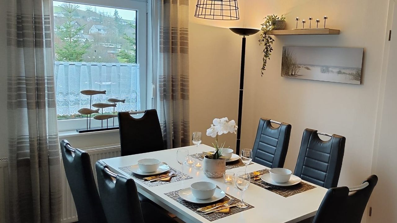 Wir vermieten ein hochwertiges 4 Sterne Ferienhaus mit zwei sehr schicken, gemütlichen Ferienwohnungen am Diemelsee im Sauerland. Das Haus liegt direkt in Heringhausen, romantisch am Berg gelegen am Fusse des St. Muffert, nur wenige Gehminuten zum Diemelsee oder zum Zentrum.In dieser Anzeige buchen Sie die Wohnung im ersten Geschoss mit Balkon. Die untere Wohnung ist einzeln buchbar und in einer anderen Anzeige inseriert.
