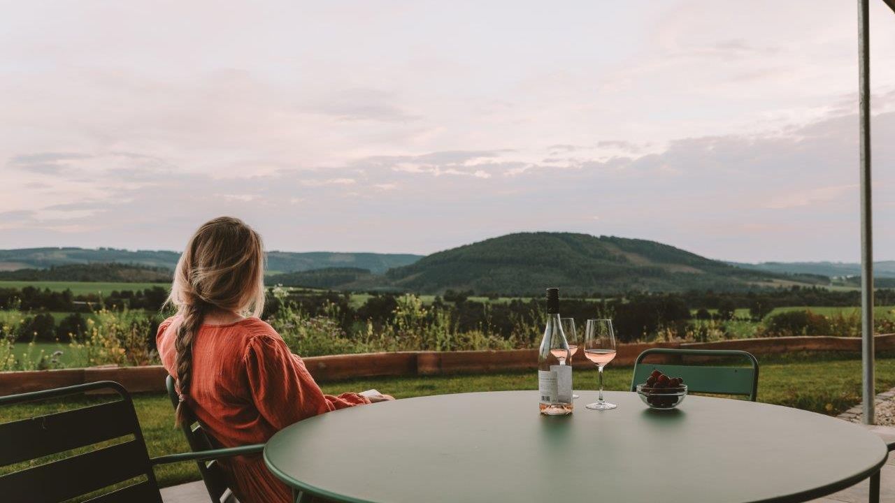 Was in den neuen Häusern ebenfalls nicht fehlen darf: die Terrasse an drei Seiten des Hauses. "Hinterm" Haus Richtung Südosten für viel Sonne, einem fantastischen Blick über die Sauerländer Berge und absolute Ruhe. Auf der Westseite des Hauses für romantische Sonnenuntergänge und Blick auf Garten, Spielplätze und Stallungen.