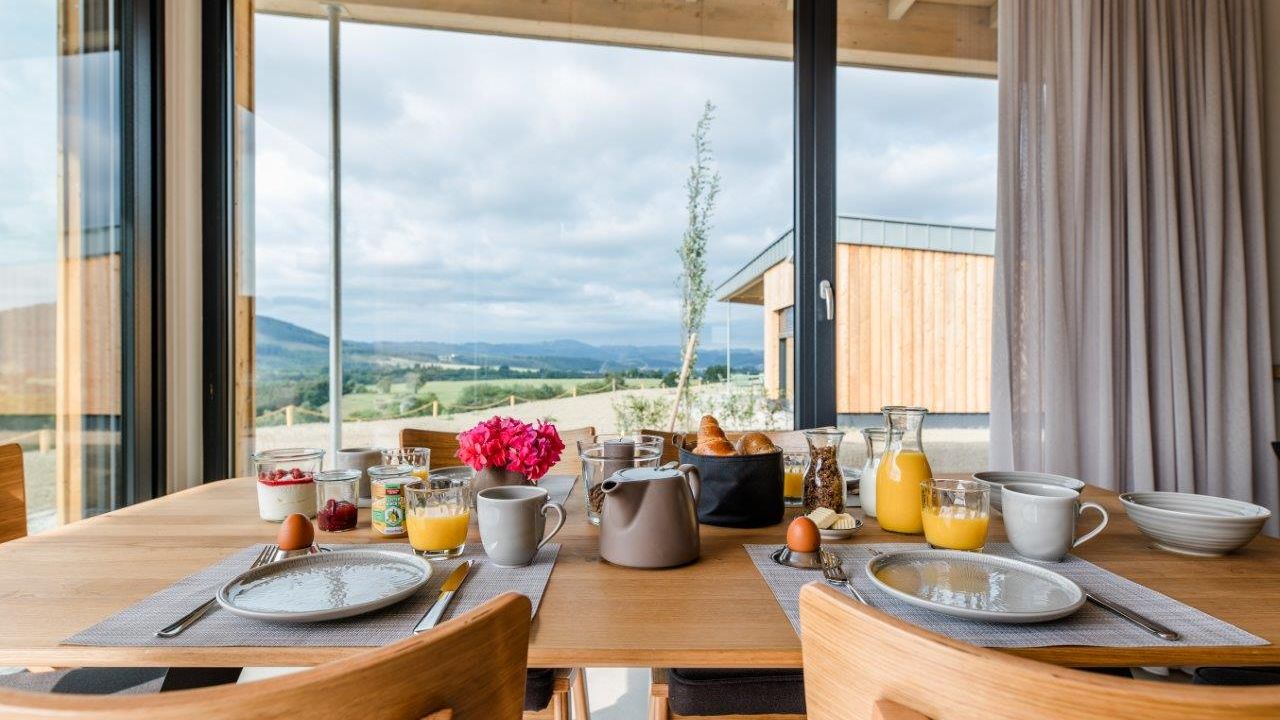 Alle Häuser sind gleich ausgestattet, unterscheiden sich aber in kleinen, feinen Details in ein Waldhaus, ein Stallhaus, ein Kaffeehaus und das Wiesenhaus.