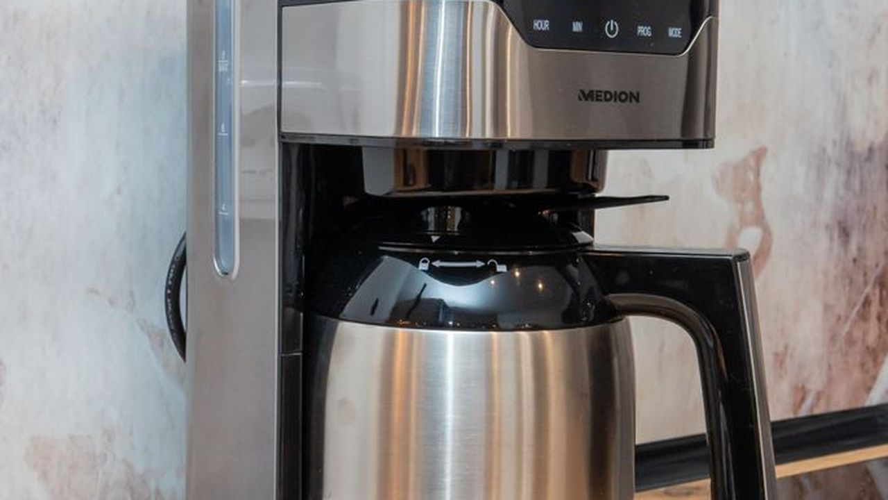 Teekanne mit Stövchen, Toaster, Wasserkocher und Kochutensilien.
