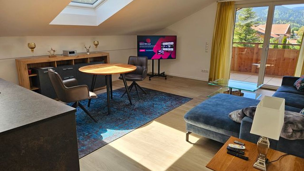 Ein herzliches Grüß Gott vom Tegernsee Stern bei Rottach-Egern am Tegernsee !Die exklusive 63m² große Ferienwohnung befindet sich im Dachgeschoß des neu errichteten und 2023 fertiggestellten modernen und im alpenländischen Stil gebauten Landhaus Lisa. Sie ist hochwertig eingerichtet und verfügt über einen extra tiefen Balkon mit freiem Blick Richtung Bad Wiessee und Tegernsee.