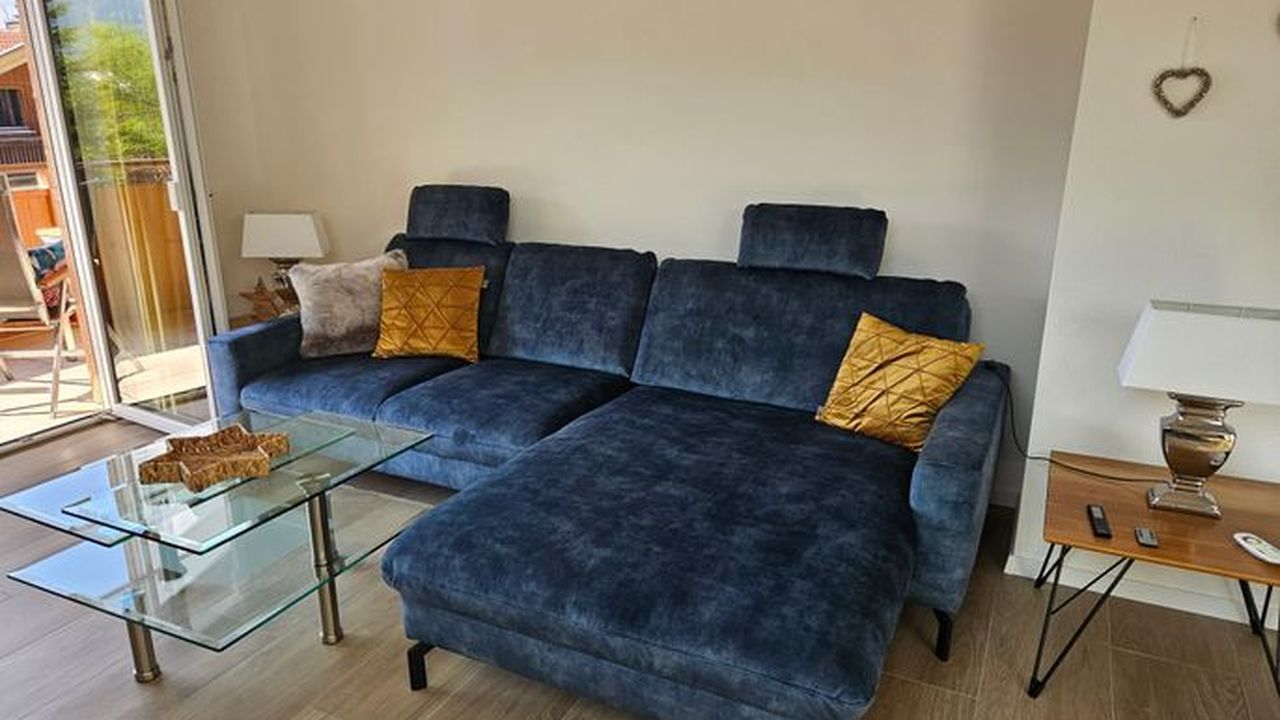 - Alcantara Couch mit Ottomane und verstellbaren Rückenlehnen