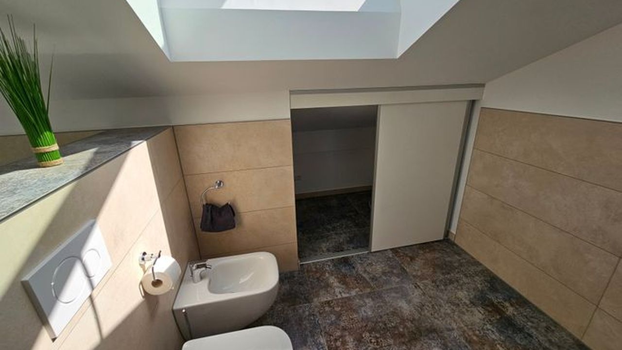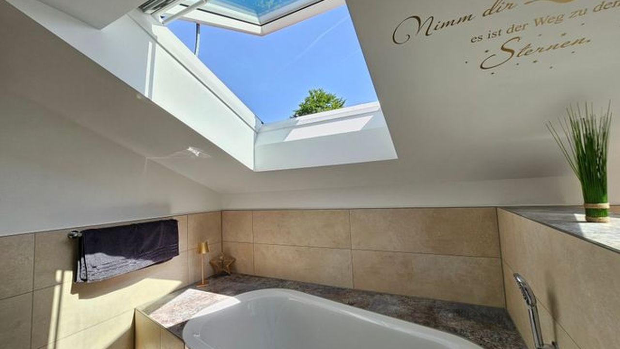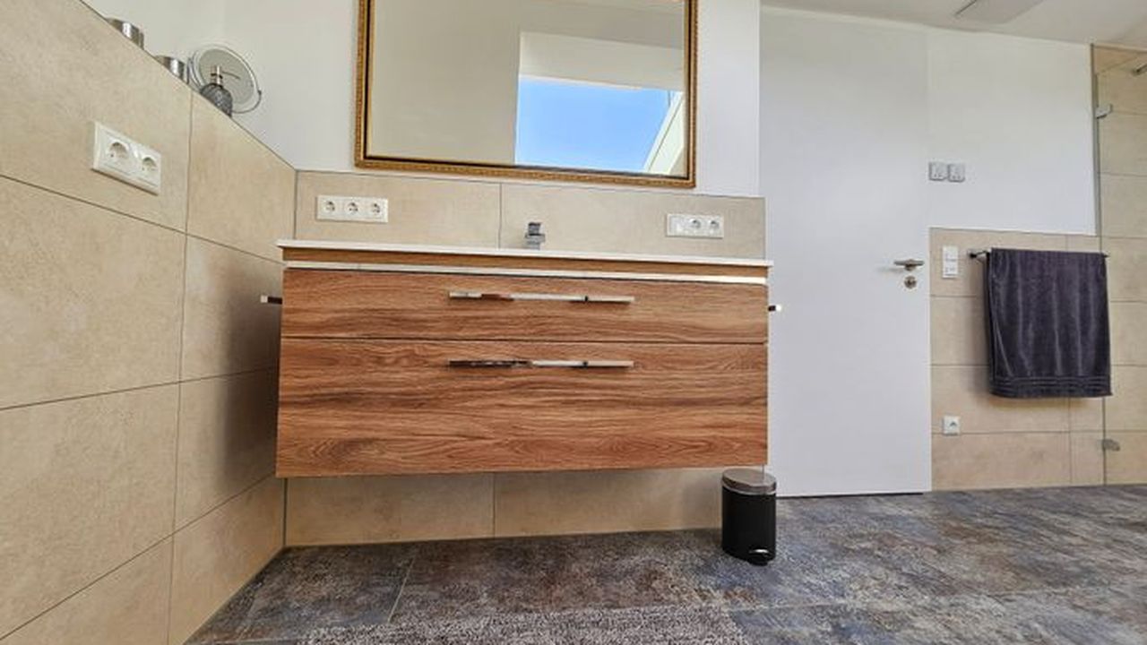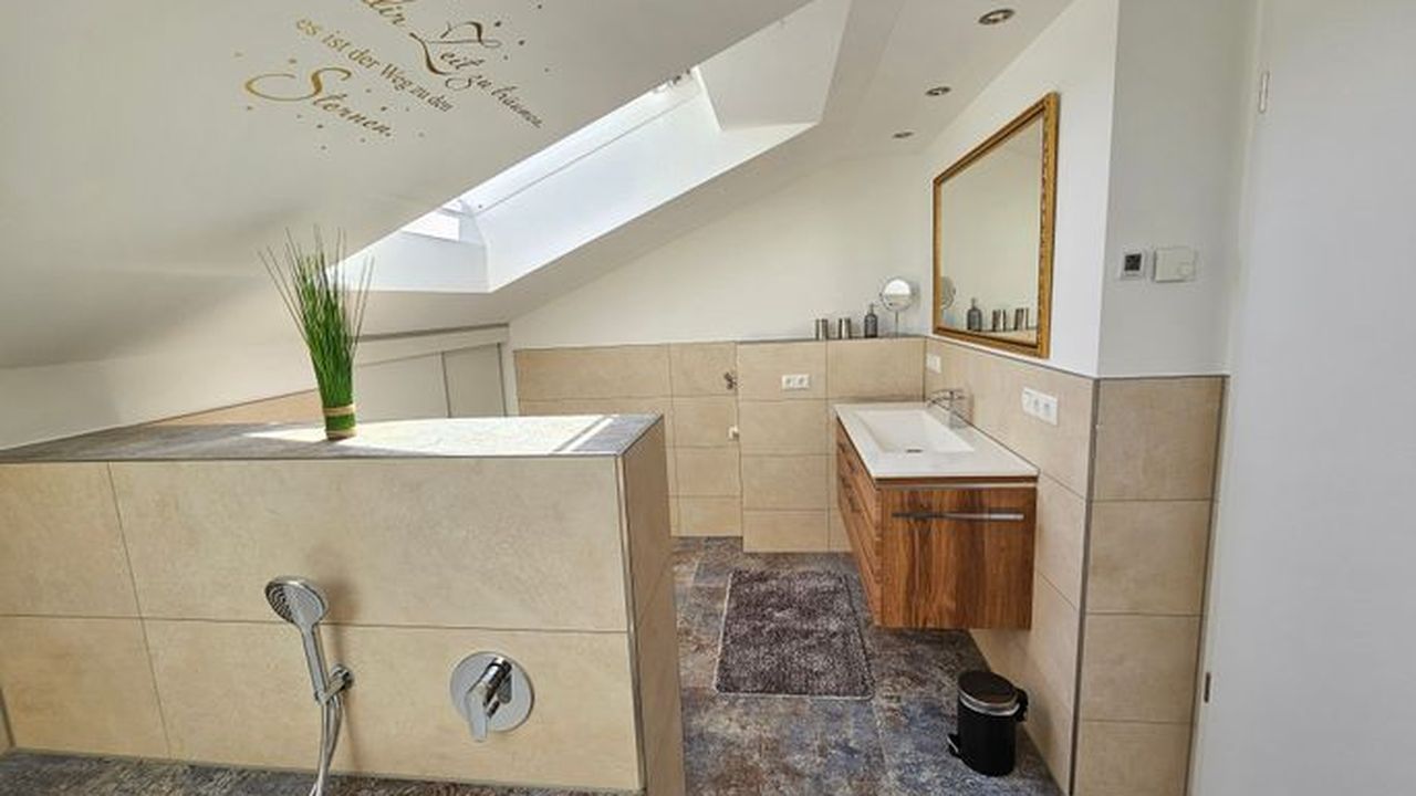 - Bad mit Walk in-Dusche, Badewanne (1,80m x 0,90m), Bidet, WC, breiter