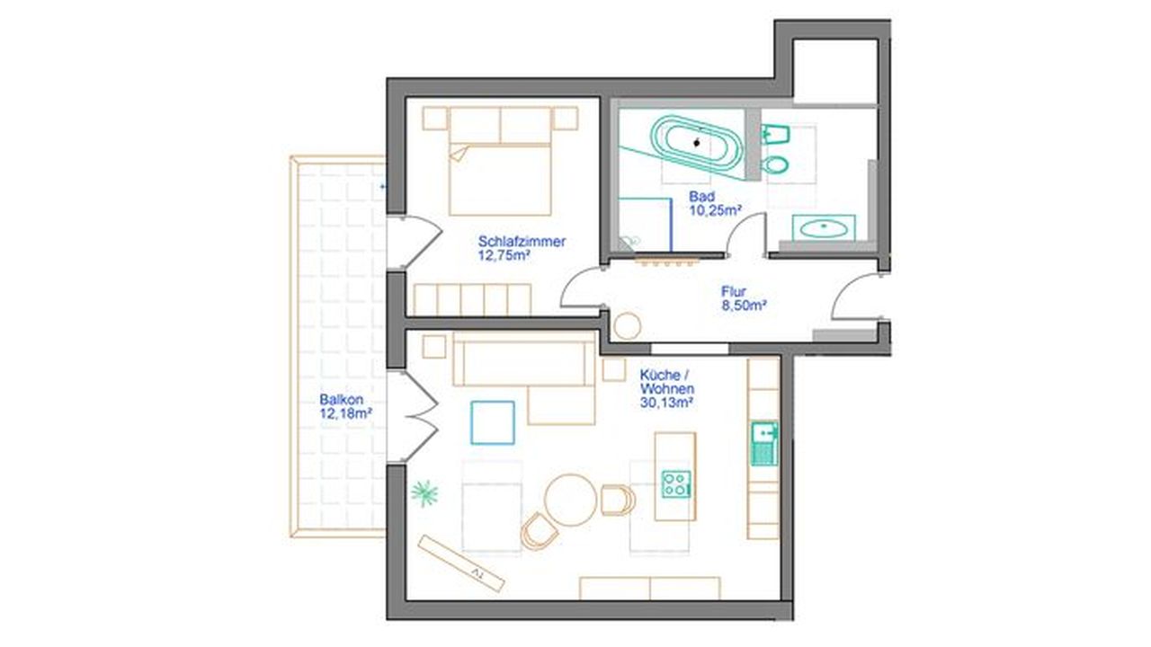 - uneinsichtiger Balkon (6,10m x 1,70m) mit hochwertigen Hochlehner Stühlen,