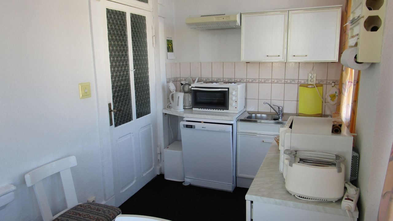 Besonders beliebt bei den Gästen der Ferienwohnung: der schöne Balkon. Im Urlaub kochen? Los geht´s, die Küche ist gut ausgestattet, sogar mit einer Spülmaschine.